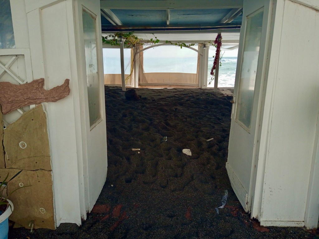We offered to roll our sleeves up and to help, but he had a team of family members and friends all doing what they could and, although he thanked us for our willing spirit, we weren’t dressed for the kind of work that was involved. We felt so bad for him because his is one of the few restaurants along the back of the beach that stays open all winter, and we and many of our friends go there often on bright sunny days during these off-season months. We asked him if he was used to this kind of problem during the winter months, to which he replied (as we’d expected and suspected):