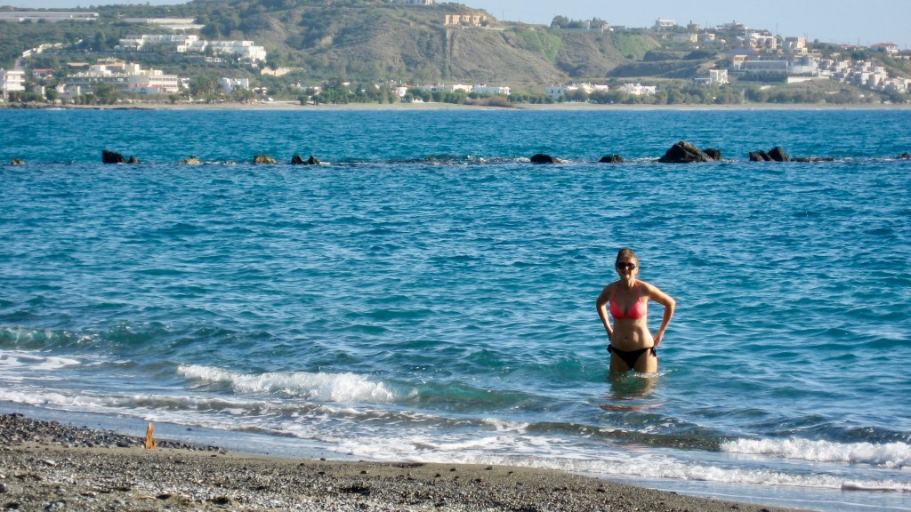 Yesterday was so beautiful, at around 22ºC that we went to the beach and Yvonne took a dip. I decided to document her efforts with my camera, so I wasn’t able to join her, sadly (*#??!)…