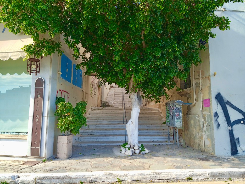 After a thoroughly enjoyable half hour of people-watching, we left a few Euros on the table for our coffees and stood up to leave, just in time to invite an older couple to take our table, since they’d recently entered the café’s outdoor terrace area in the hope of finding seats, and so far been disappointed. Something I truly love about one of the ways that Greek people will express their thanks if you show them even the smallest kindness, is the fact that, besides actually thanking you in word, they’ll lift a hand to their chest and press their palm or fist to their heart, like they’re saying “I appreciate your thoughtfulness from right in here,” and I believe that they genuinely do.