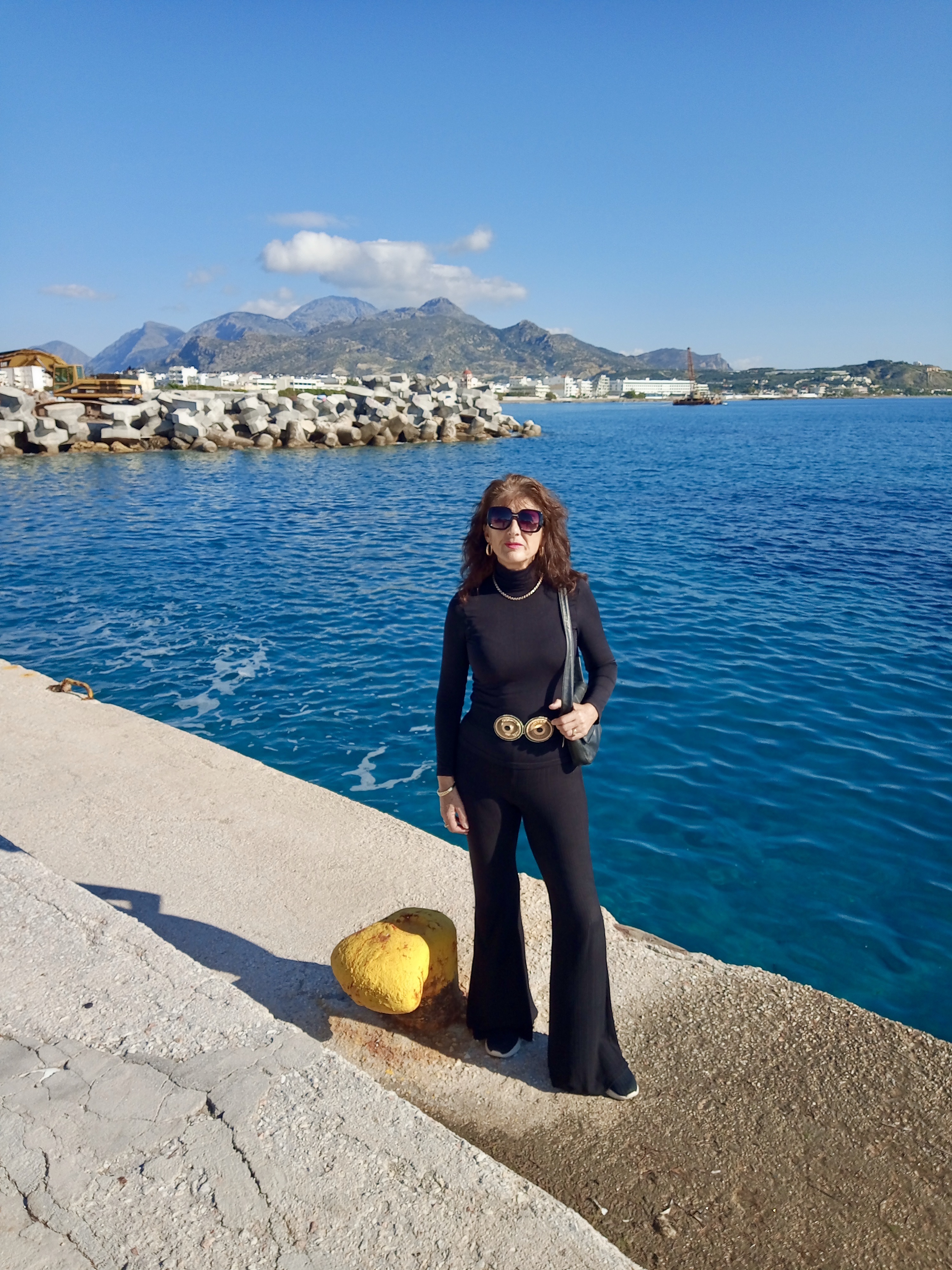 Above: Here’s Yvonne (Maria) doing her ‘Emma Peel’ bit on the waterfront a few days ago. And if you remember who Emma Peel was, you’re probably older than you look.
