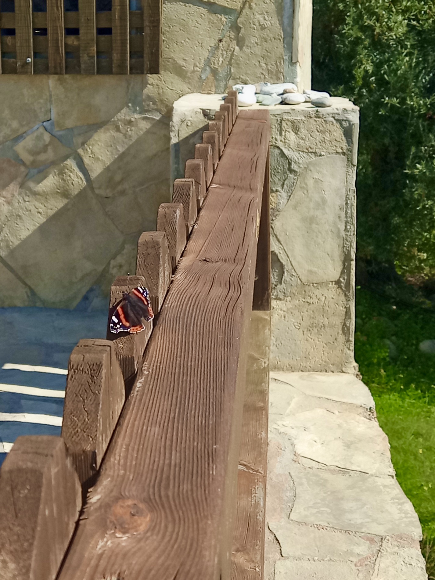 Above: A Red Admiral warms itself in the sunshine on the fence in front of our neighbour’s veranda, 13th February at midday.