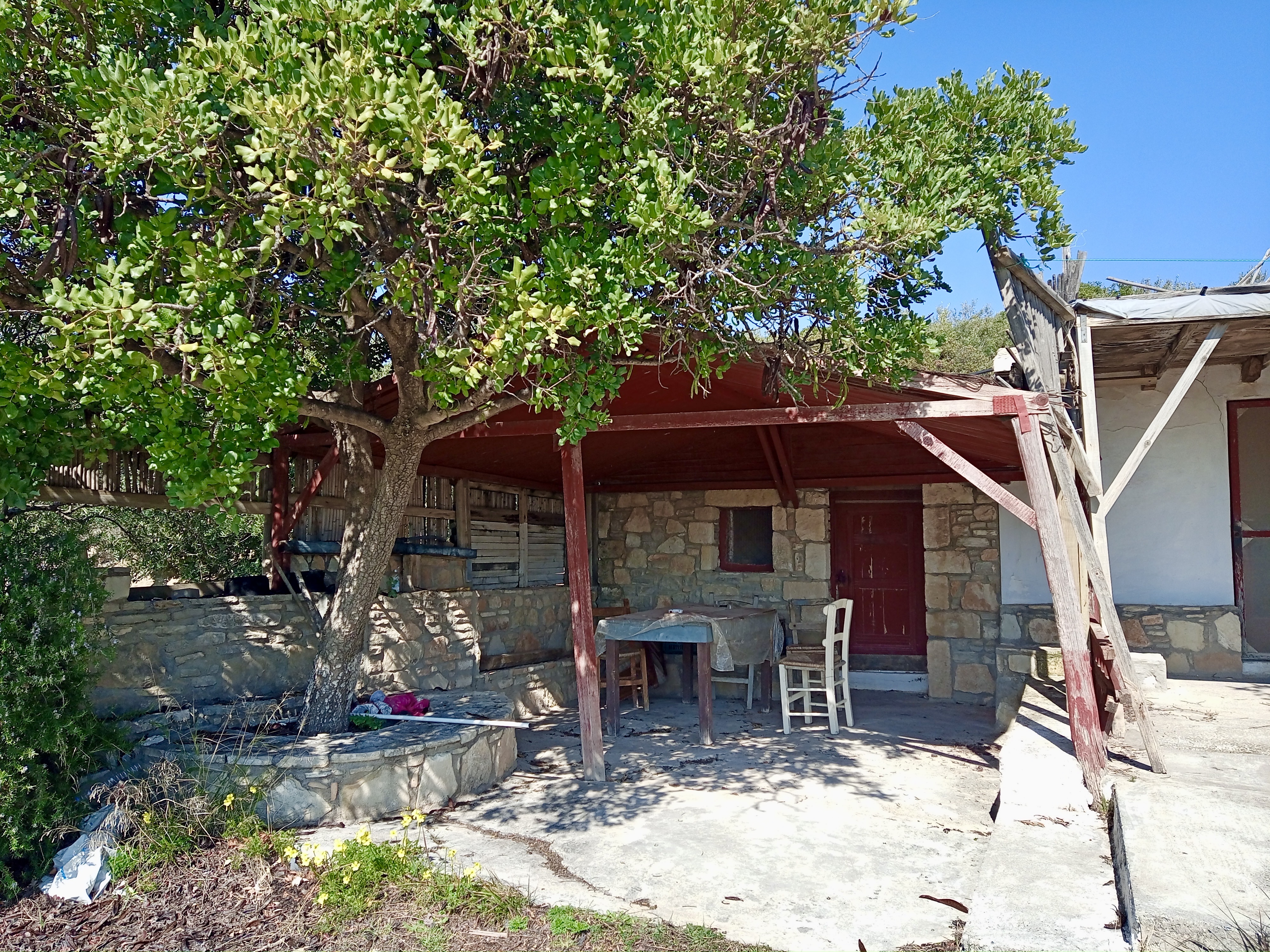 The last one above shows the edge of the village from across the valley, and our house is clearly visible, it’s the one with the deep shade on the veranda that stretches the length of the front of the property. It’s not the one with the washing on the upper balcony, that’s Maria and Dimitri’s, ours is above and slightly to the left. It’s a single story property.