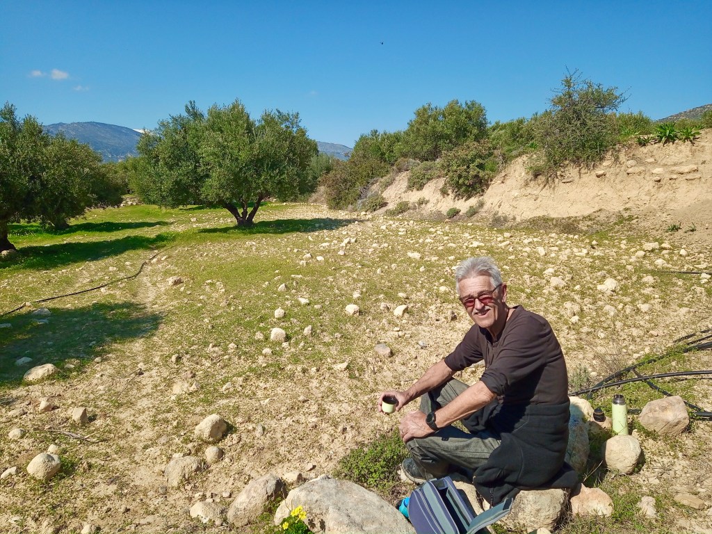 It was one of those days when you pinch yourself to remind yourself that you’re still in mid-February, and you set out wearing a fleece over a t-shirt, but soon take it off and wrap it around your waist, you get so hot in the sun. We’ve often remarked in the 18 years that we’ve lived in the Southern Aegean that the winter sun here actually has some power in it. Back in the UK the sun, when actually shining in mid-winter, shed light, yes, but you could rarely if ever feel any heat from it. Over here, if there are no clouds to block it, you can still feel it hot on your skin, whether it be December, January or February, and it’s very welcome. On Friday it most definitely warmed us, since the day dawned (and largely remained) completely cloudless.