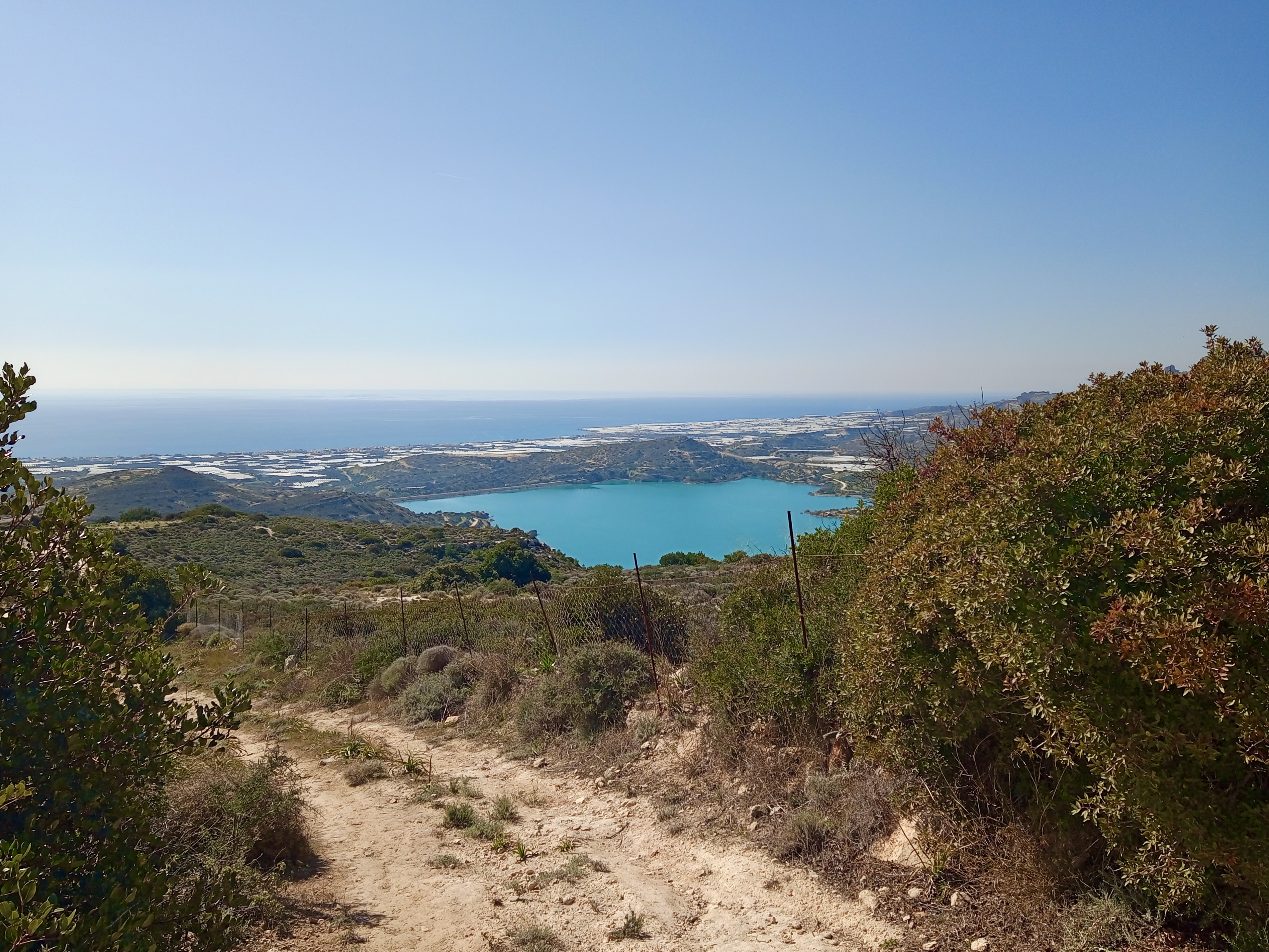 I was talking to a couple of friends who farm for a living yesterday, Sunday. They both grow vegetables in hot-houses and, whilst both agreeing that the weather is indeed beautiful, both Giorgos and Takis expressed concern that Ierapetra would face a major water shortage problem this coming summer and autumn if there isn’t more rain before the winter’s out. Notwithstanding the fact that the reservoir (clearly visible in some of the photos in the gallery above) is full to the brim, largely due to the deluge that we experienced last October, when Siteia sustained major damage, and a friend of a friend there saw his car float off down the street and end up in the harbour, a complete wreck when finally recovered from the muddy depths, they nevertheless feel that it will soon be depleted once watering gets under way with avengeance as the spring sun warms up the weather and summer comes upon us.