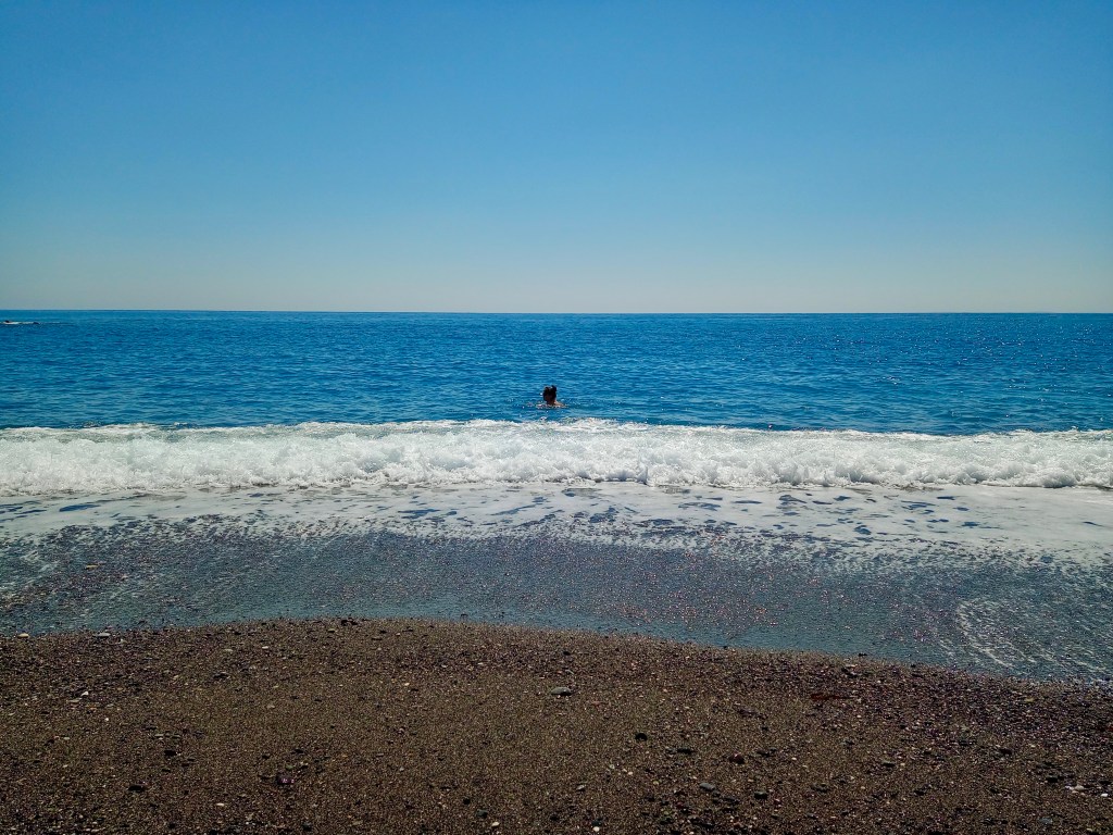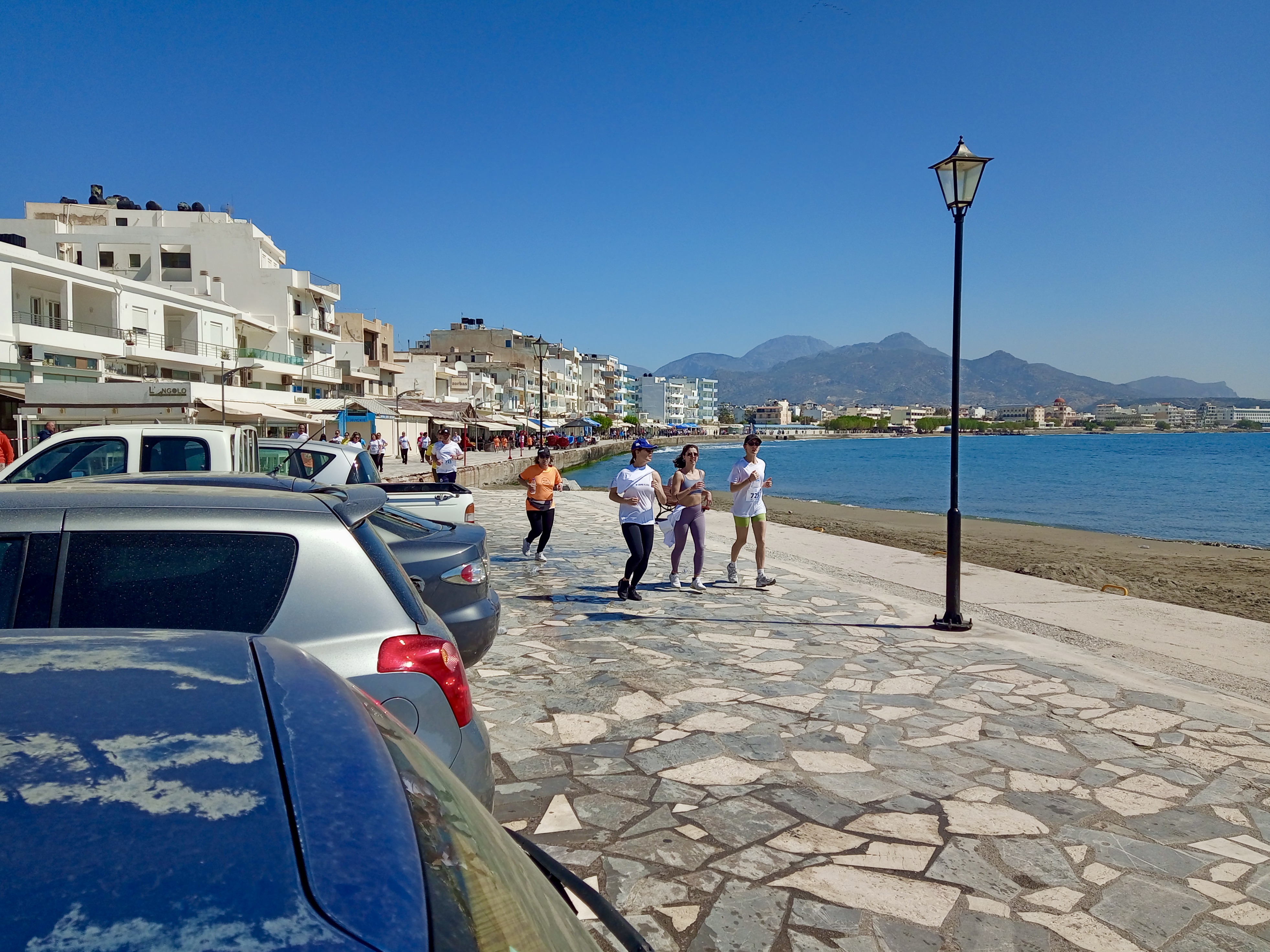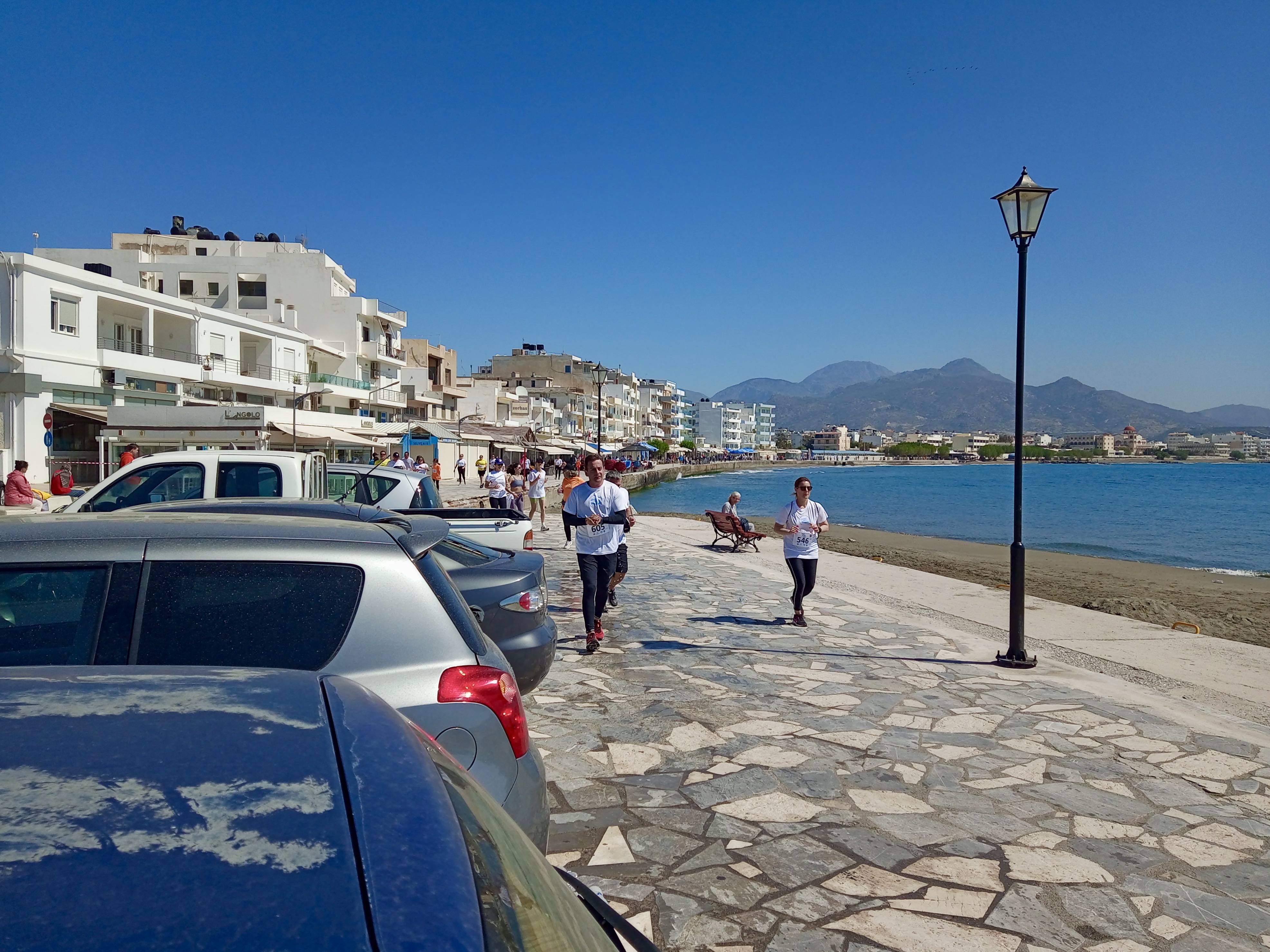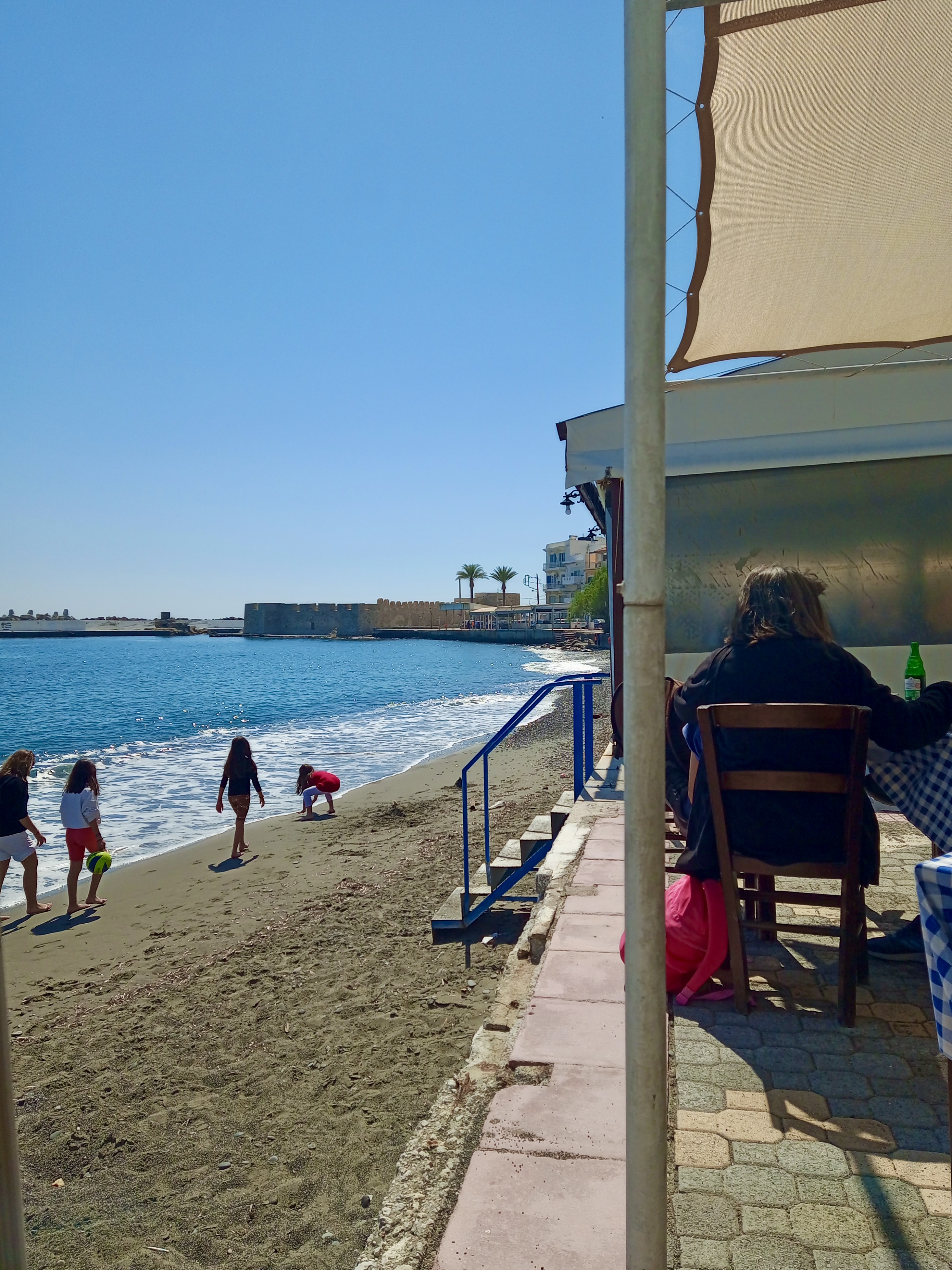 As you can see from the above photo, more by luck than judgement we’ve ended up living in the narrowest part of the entire island of Crete, which we’ve come to appreciate all the more as the time’s passed since we found our cozy little house. That red circle is about where we live. Setting out in either direction from home, we can be on a beach, or at least at the coast, within ten minutes, north or south. It’s such a bonus, because if the wind’s strong from the north (the prevailing direction), we can head south, and if it’s in the south (much less often) we can head north, if we’re looking to have a swim in flat-calm waters or drink a coffee or eat out without everything being blown off the table. We never planned it that way, but it’s yet another aspect of living here that we’re grateful for.
