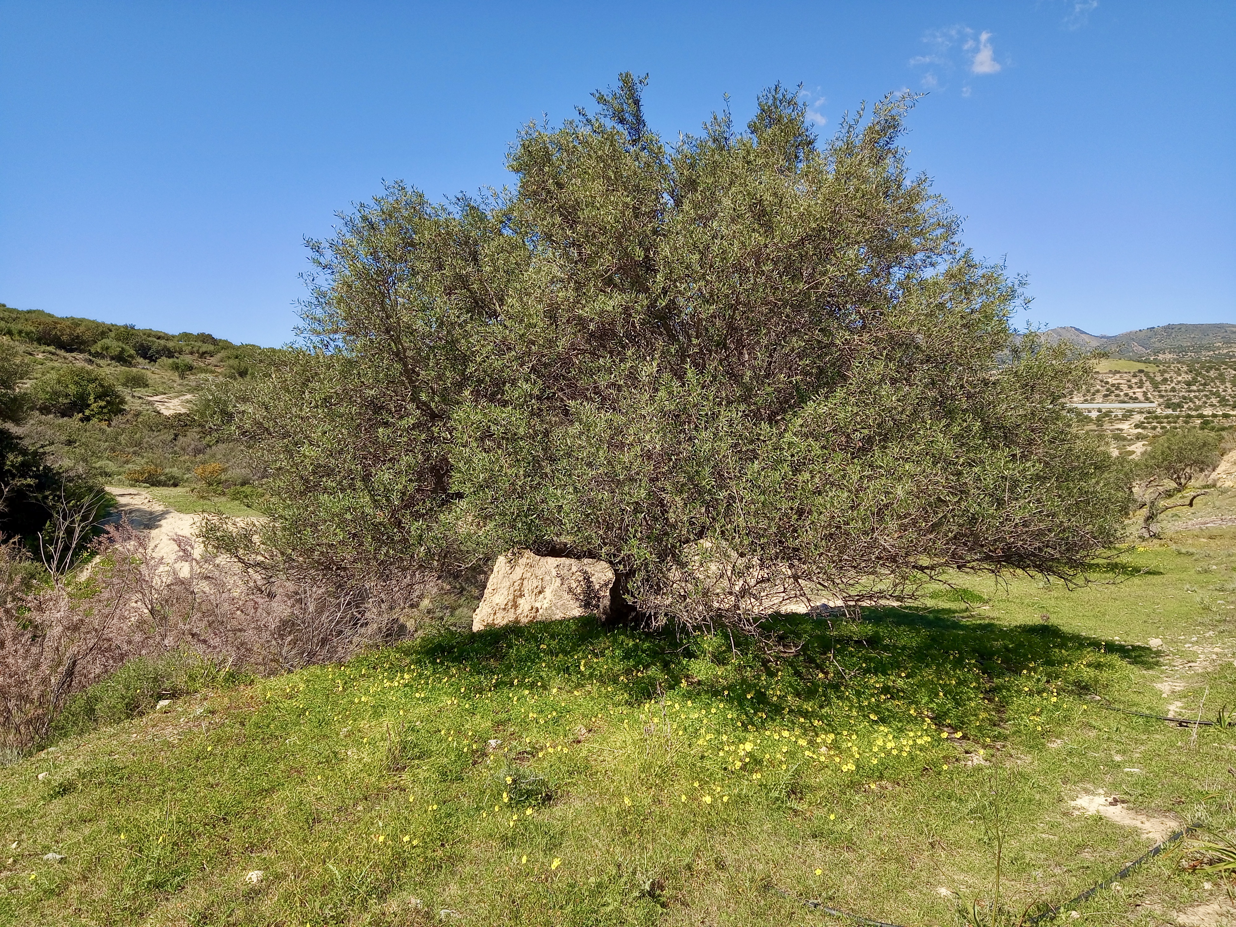This next one below I rather like, because it shows how the shade from the olive trees attracts that plant with the pretty yellow flowers whose stems taste of lemon (all the children pick and suck them) and they flourish better in that shade than in full sun. In some olive groves at this time of the year there are hundreds of these yellow patches, one around each tree trunk, and it looks lovely…