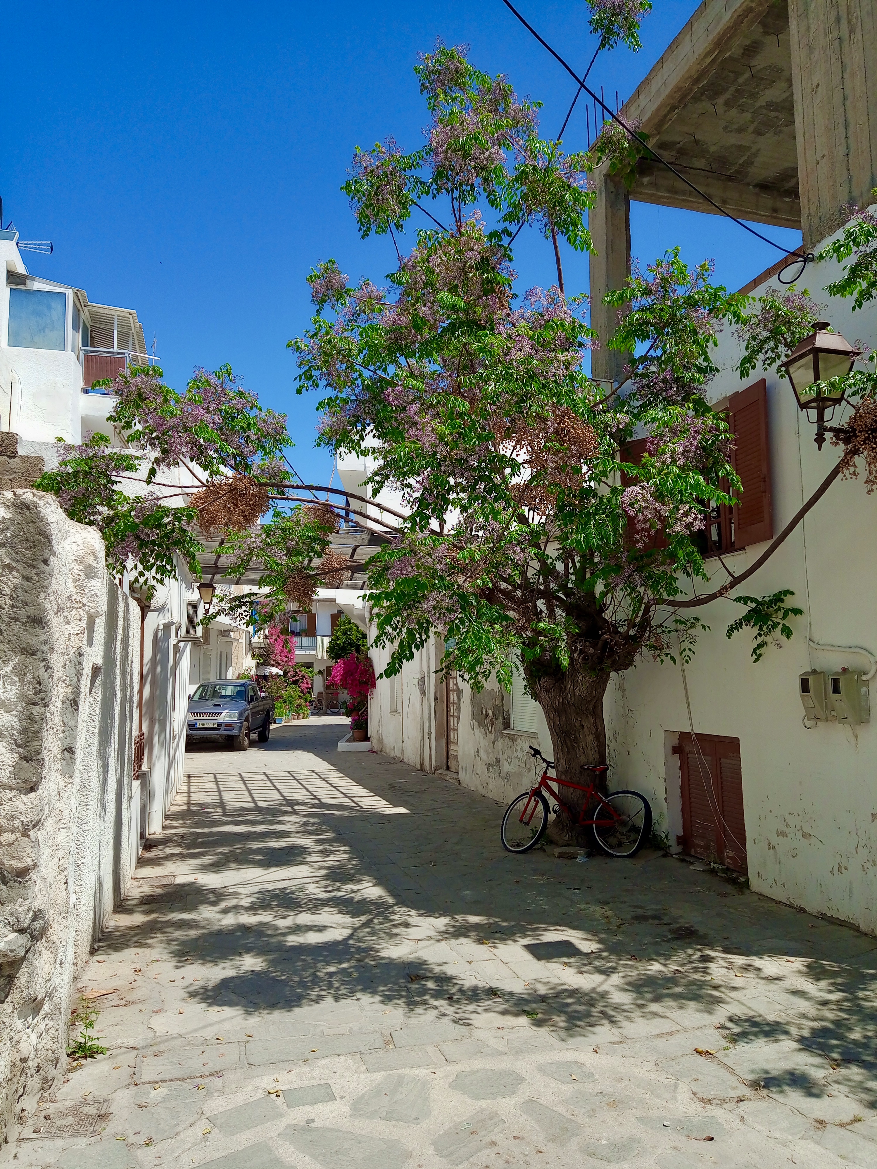 Above: In Ierapetra Old Town earlier today. A Jacaranda is just bursting into flower.