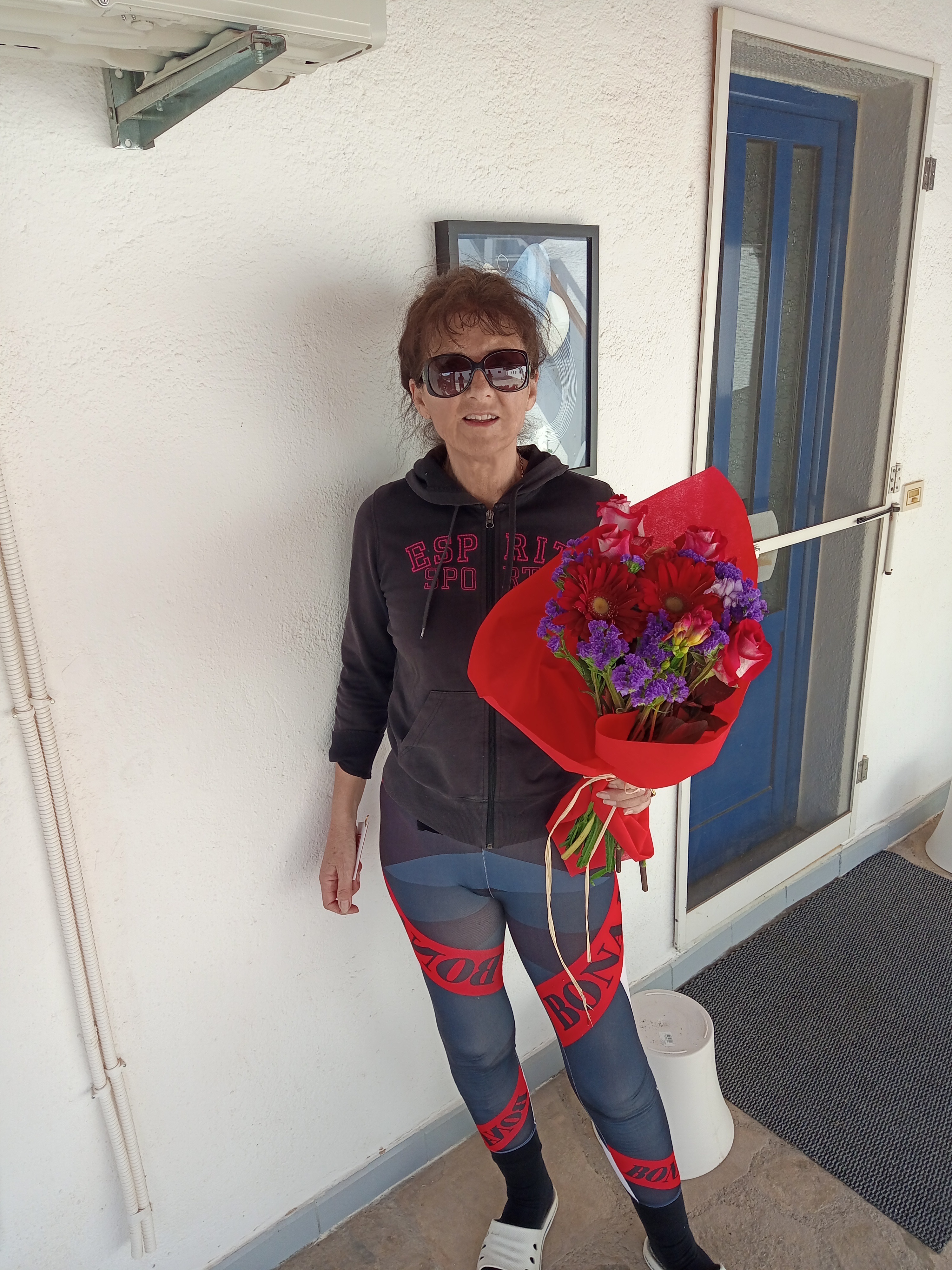 Now, this kind of ‘cake’ isn’t anything like the ones you’d get in the UK. In fact they usually call them ‘tourta,’ and when you cut them they’re layered inside and very, very rich and gooey. What added that little bit of pzazz was that it came with a sparkler, which, of course we immediately lit and the video shows the result. The only problem we had with this was, as a rule we don’t eat this kind of thing, but then neither do our friends Timotheo and Sylvia, but the occasion demanded something a bit out of the ordinary, eh? We all tucked into a slice, accompanied by coffee (a given) and then the rest went into the fridge. There was no way that the two of us could ever get through the remainder, so Maria and Dimitri down the lane were only too pleased to help us out when we took a large chunk down to them. Maria told me how much she thought this kind of cake costs, which further increased our appreciation for the kind of friends we have here!