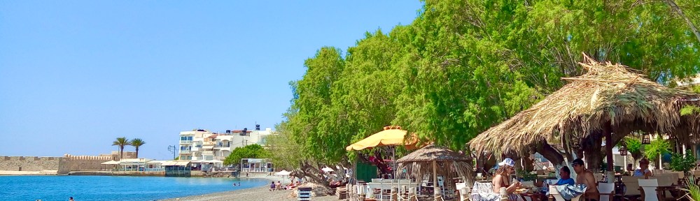 Above: Taken at 11.50am this morning on Ierapetra beach as we took our iced coffees and had a gorgeous dip in a sea that’s now already up to 22ºC. Go on, tell me that the Caribbean is the place to go, eh? They get hurricanes, and it gets dark at tea time all year round!!! No, I know it’s wrong to make comparisons, but a few years ago back in Rhodes I once had a British bloke on one of my sea excursions whom I caught at the stern of the boat gazing at the endless blue sky and looking very pensive. As I approached him, he looked at me and asked me, “Is it always like this then?”