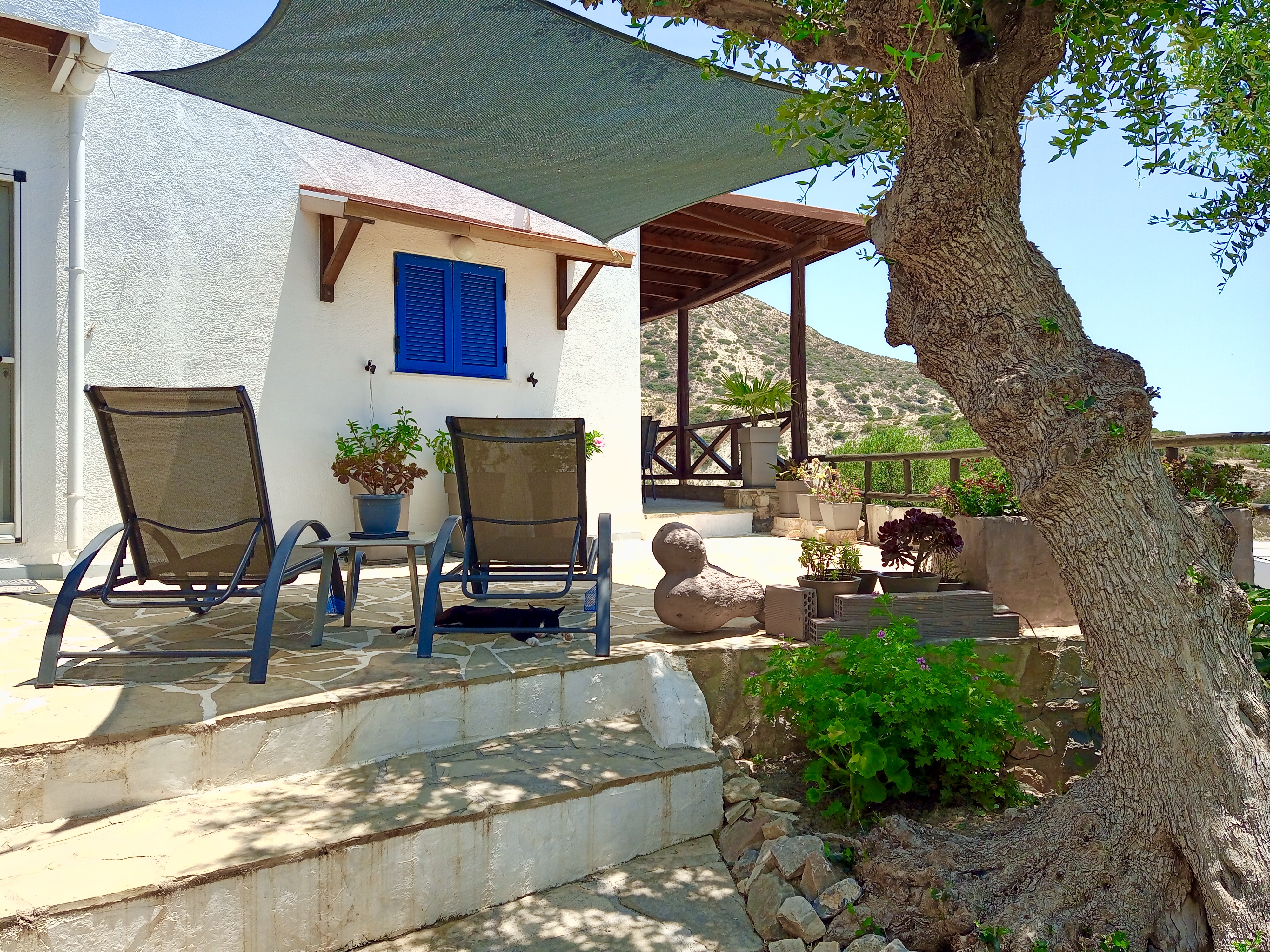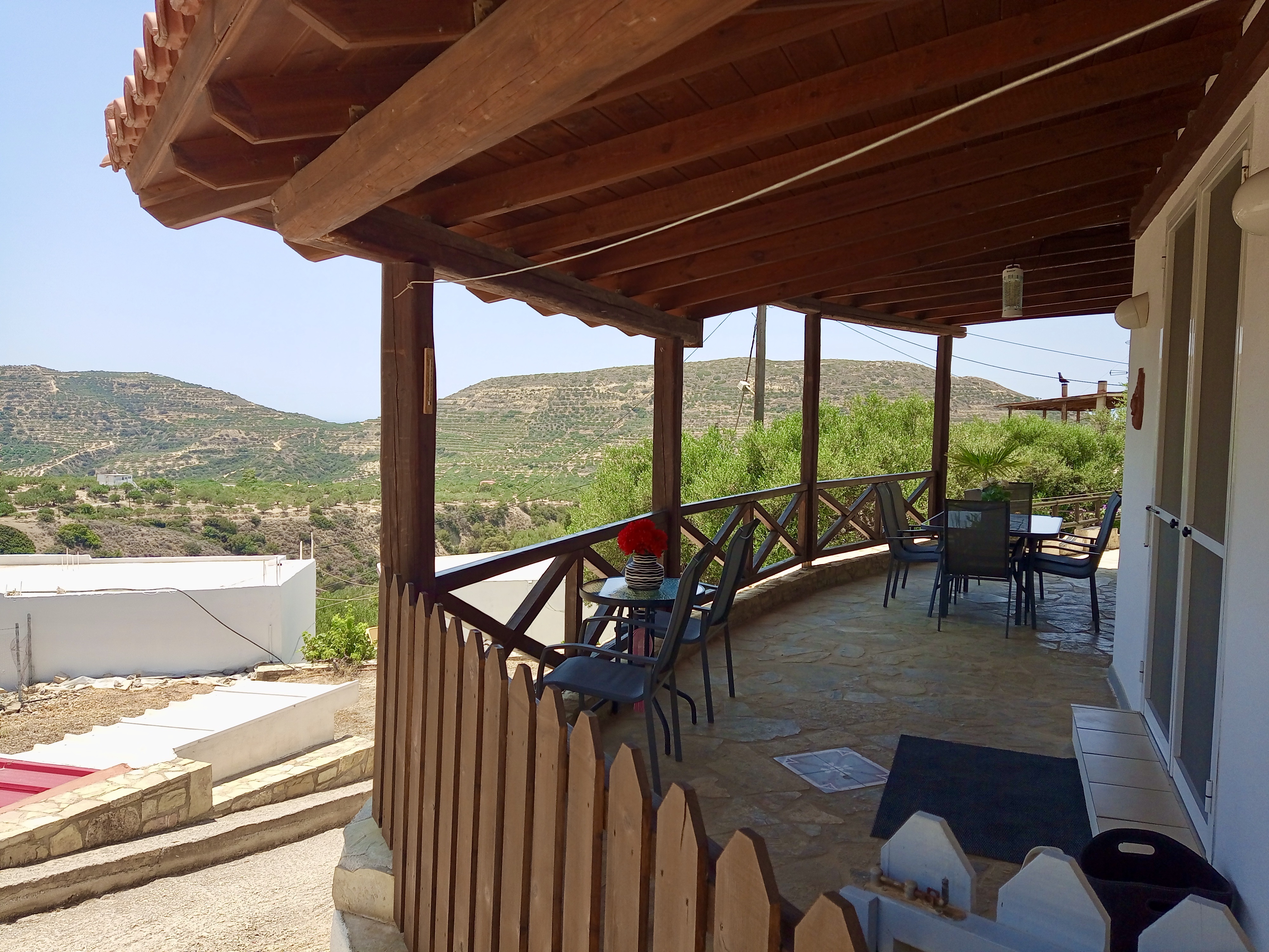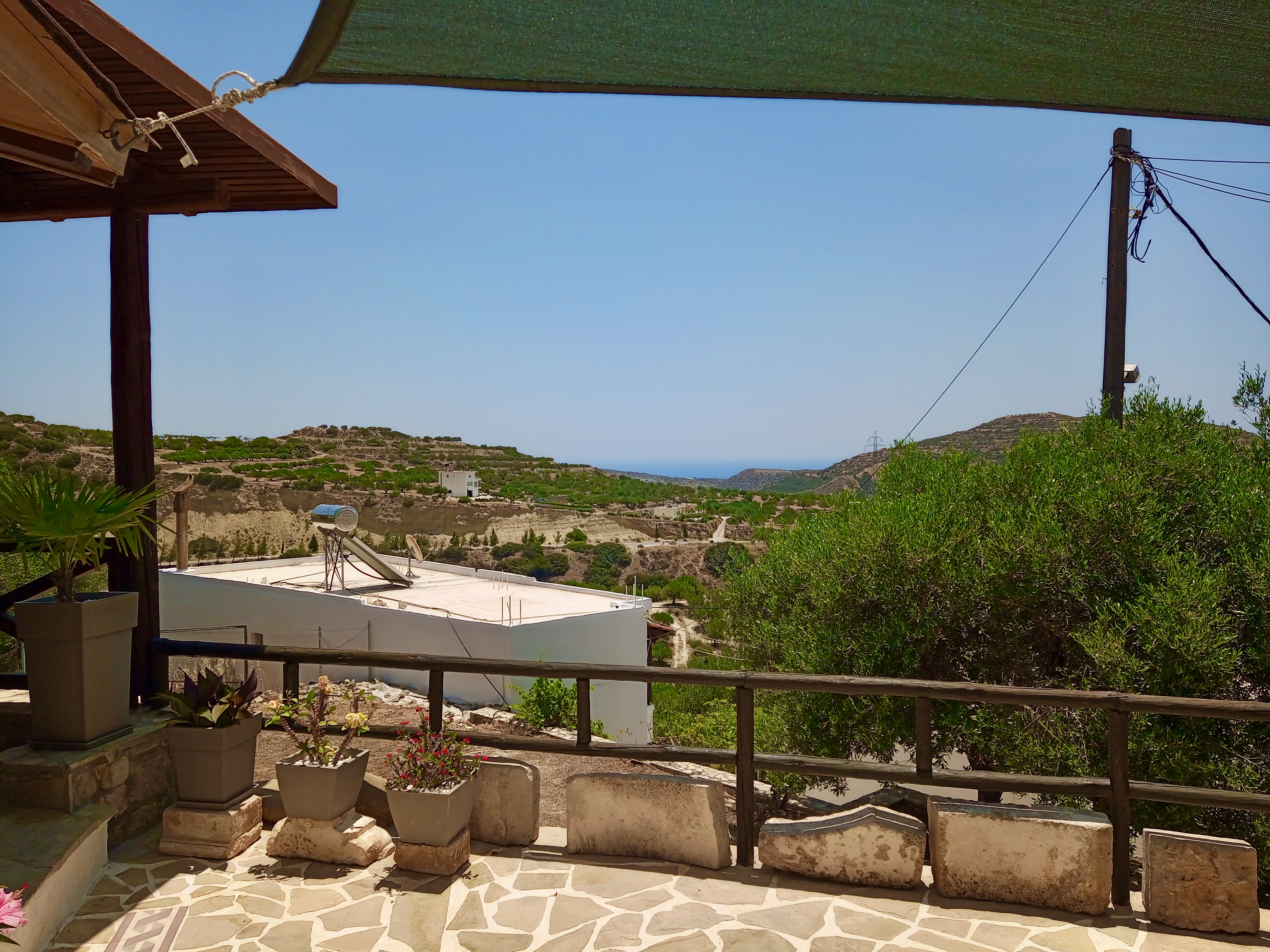 That’s about it, really. After spending an amusing couple of days being shown a bunch of derelict wrecks of houses and flats, Yvonne did a bit of surfing on-line and turned up this amazing little chalet-style house here in Makrylia, on a beautiful hillside with an amazing view from the veranda down through olive-clad hillsides to the Libyan Sea, we arranged a viewing, and the rest, as they say, is history.