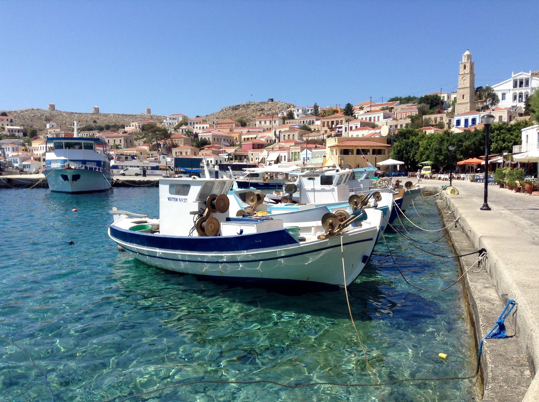 Way back in the mists of time, I used to do a regular excursion as an escort from Rhodes to Halki. In high season sometimes I’d do it two, even three times in a week. It was a long day out and the pay was rubbish but, to be honest, in general I enjoyed the work immensely for several reasons. One, the island of Halki is still probably one of my favourite places not only in Greece, but in the entire planet. It’s wonderfully small, sleepy, a long way from the major tourist traps of the world, and extremely photogenic. During my ten years as an escort, I worked for a number of different companies, and I did the Halki trip mainly for Travel Exchange and TUI. In both cases I had wonderful fellow workers to spend the time with and have, as a consequence, some indelible memories.