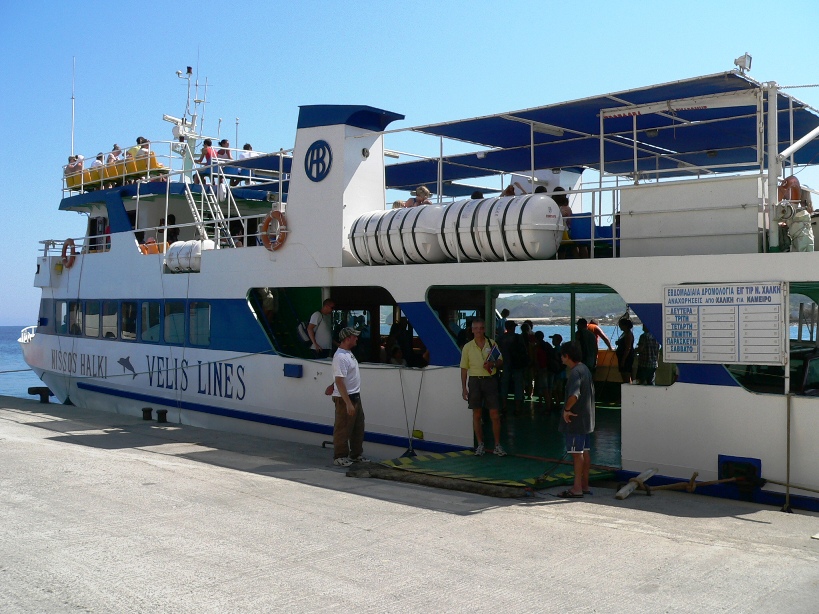 Nine times out of ten I’d be on board the Nissos Halki. Another boat that does the crossing and is of a similar age to the Nissos Halki is the Nikos Express, although she was a might slower and usually arrived a few minutes after us at the island. In the last few years during which I did the trip the brand new Fedon also joined the fray and cut around 20 minutes off the crossing time for those fortunate enough to get on board her. The Nissos Halki and the Nikos Express both had a small vehicle deck at the stern, capable of carrying up to four vehicles at a push. The Fedon has no vehicle deck, and was much sleeker as a result.