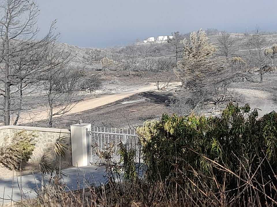 I’m sure that, if I were able, I’d discover many more stories about lives that have been destroyed by this, the worst wildfire in the island of Rhodes’ long history. But there can be few as tragic as this one, because in the space of a few days a good friend and neighbour of ours went from sipping his iced coffee under the brilliant blue sky of a Greek summer on the terrace of the home that he and his wife had built with the proceeds of many decades of damned hard work and toil during their careers back in the UK to losing his life through the sheer shock and stress of seeing all that they’d worked for go up in smoke. In fact, crazy as it may seem, it would probably have been better for them had their house been gutted like the ones either side of it. At least then they could have considered their option to rebuild, hopefully with the proceeds from an insurance payout, and there’d have been no immediate need to worry about the vulnerability of a lone house far from prying eyes.