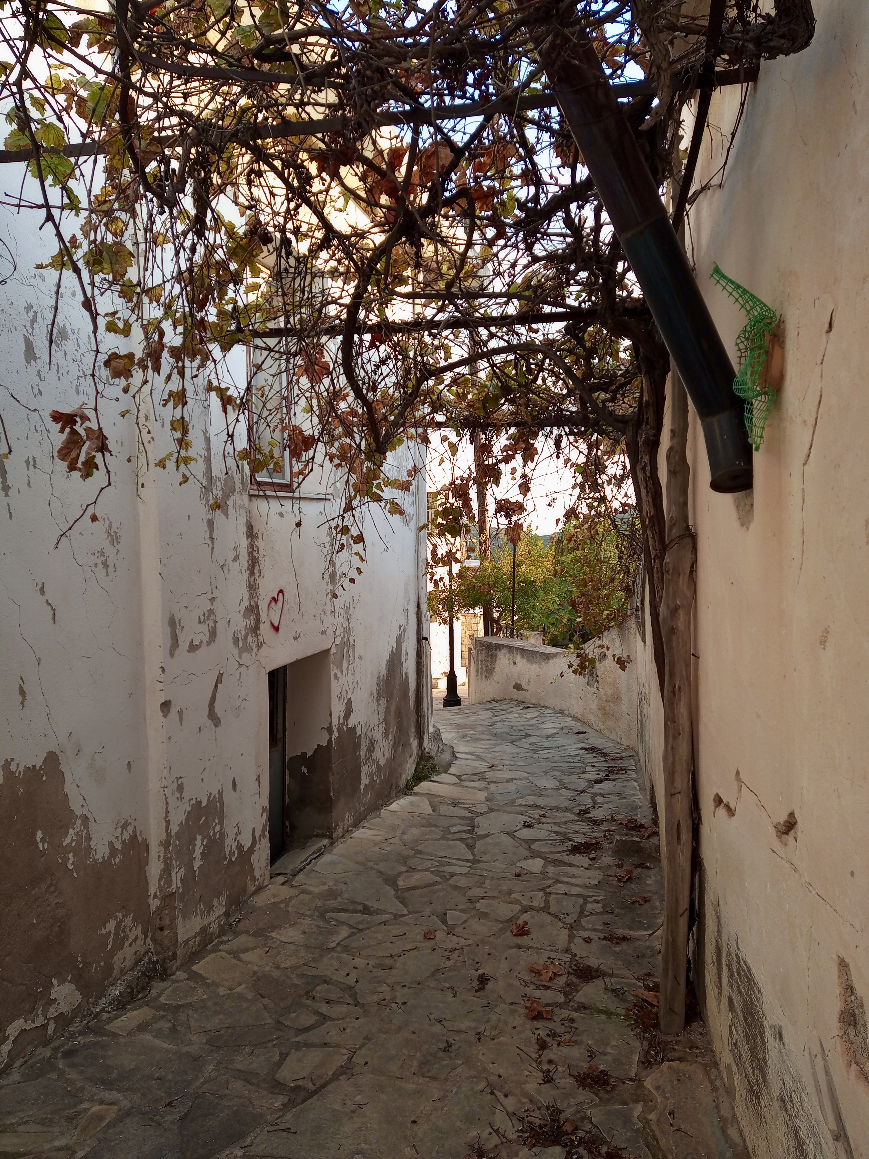 There’s absolutely no way you can resist such pressing kindness. As we again bade them good evening, Giorgo’s face seeming to us to bear signs of mixed feelings between his desire also to be kind to us, and the fact that he may have had other plans for his modest little harvest, we turned to see Maria from the house below ours busily sweeping up fallen leaves in the lane. Just then as our little group reached five in number, who should come coasting down the hill past our house on his moped but the newly elected mayor. We all bade him a good evening, and he returned the greeting, I can’t help thinking with a degree of smugness at seeing his predecessor in our company. Yes, we knew him by sight, but not on first-name terms. He is a little gruff by nature, giving insecure people the impression that he doesn’t like them, but I think (hopefully) that it’s just his way.