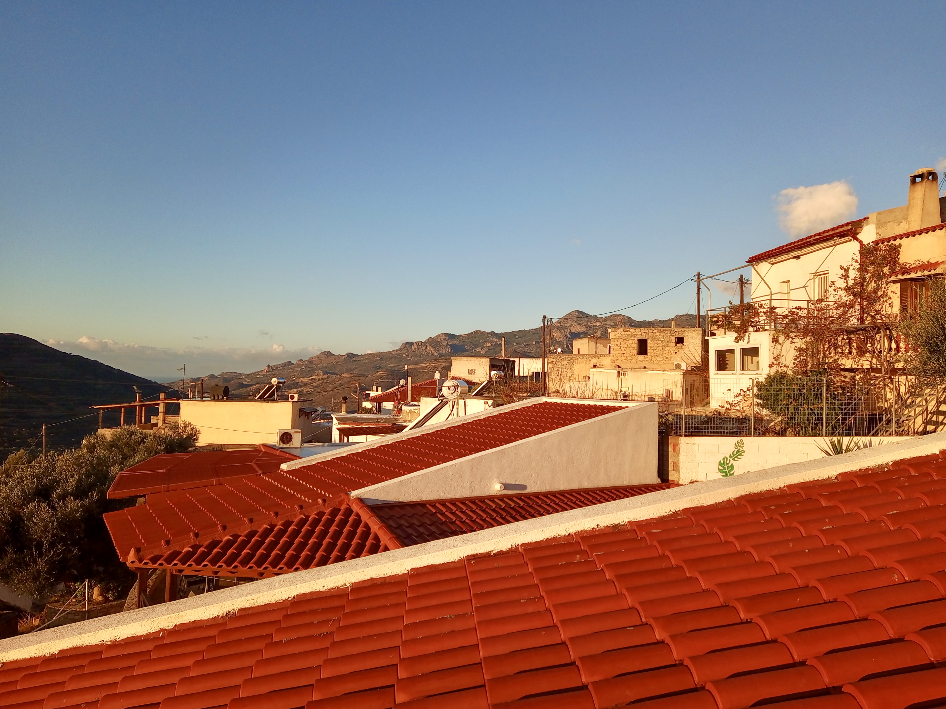 The Sporades Islands, which include Skiathos, Skopelos and Alonissos, often get snowfall during the winter, owing to their proximity to the mainland. The best place in Greece for winter warmth is without a doubt the southern Dodecanese (Rhodes, Halki) or Crete. Even the two ends of this island have very different climates, as does the north coast from the south, where we are. The prevailing winds on Crete are from the north to north west. This results in the north coast getting a lot more cloud and rainfall than we do here. Over in the west, from Heraklion through Rethymnon and on to Chania, they have much stronger winds and more rainfall than we do, as a rule. Today, we sat out on our sun loungers at midday to drink our coffee in 21ºC and full sunshine. In fact, although I’d already stowed away our huge three metre wide ‘sail’ for the winter, I had to dig it out again and put it back up yesterday, because the sun was burning our faces.