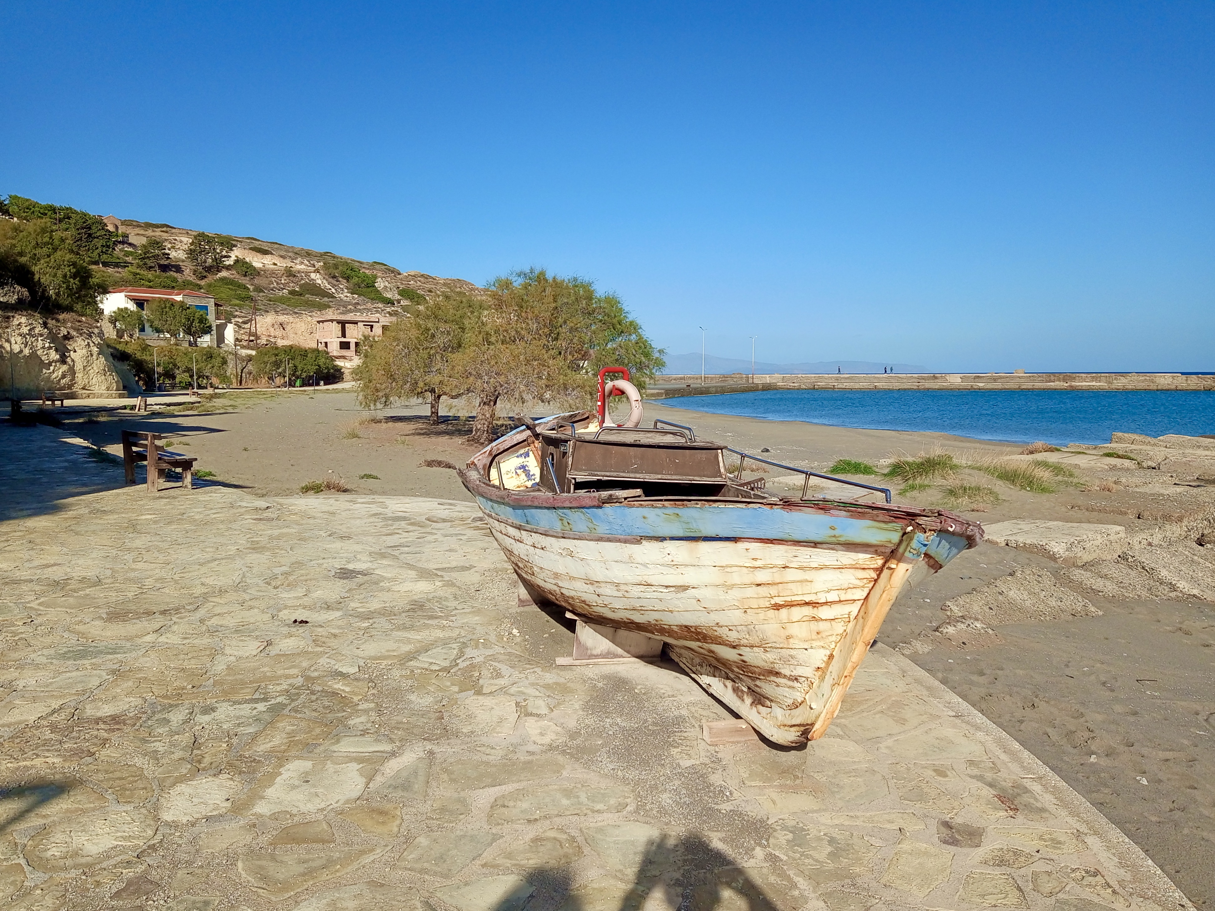 It’s a good job we did that, because (and what a blessing it is that Ierapetra’s hospital is only ten minutes away) once we got her in there and a couple of medics and a doctor examined her, they took a couple of x-rays and told her that she’d fractured her shoulder blade. She was also coming out in a couple of nasty bruises on the lower back and the doctor, when he’d finished with her, put her arm in a sling for a couple of weeks and told her to not use the right hand. When she asked him, “How am I going to do the cooking?” He replied, “Your husband will have to do it, won’t he.” As we were leaving the hospital, Yvonne said that she got the distinct impression that the doctor didn’t quite believe her explanation about how she got the injury that she did. He seemed to struggle to believe that she’d have fallen on her back, preferring to suggest that she’d have fallen on her front if she’d slipped, as she’d explained, on the outdoor steps. No wonder he stared sideways at me as I helped her on with her zip-up top before we left the accident and emergency department. I resolved to have a photo of the steps in question ready on my phone to show him when we return to see how the injury has healed.