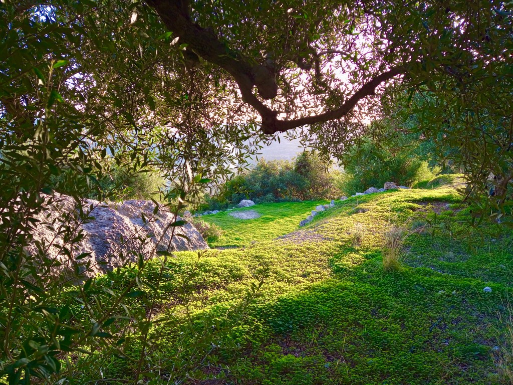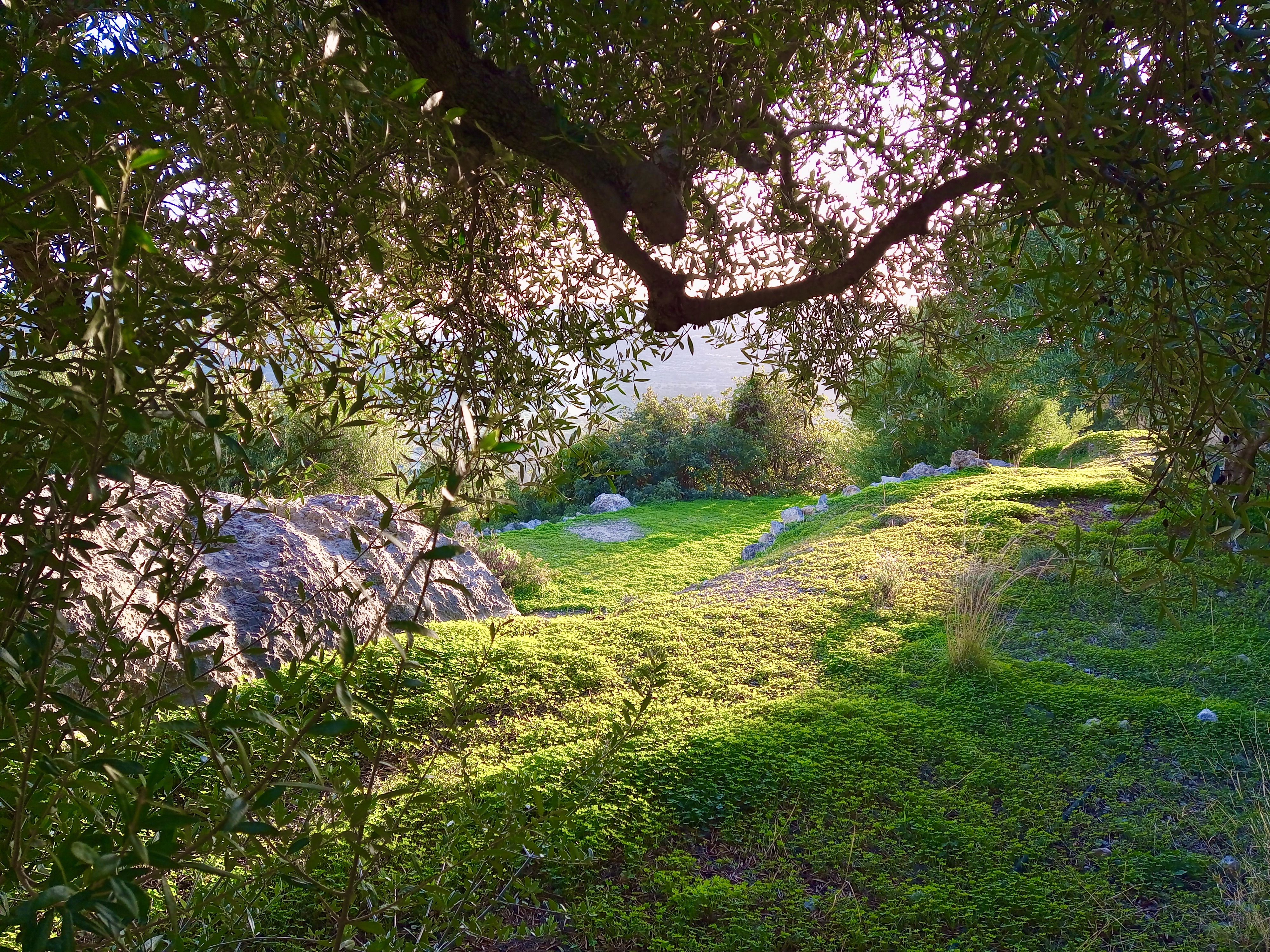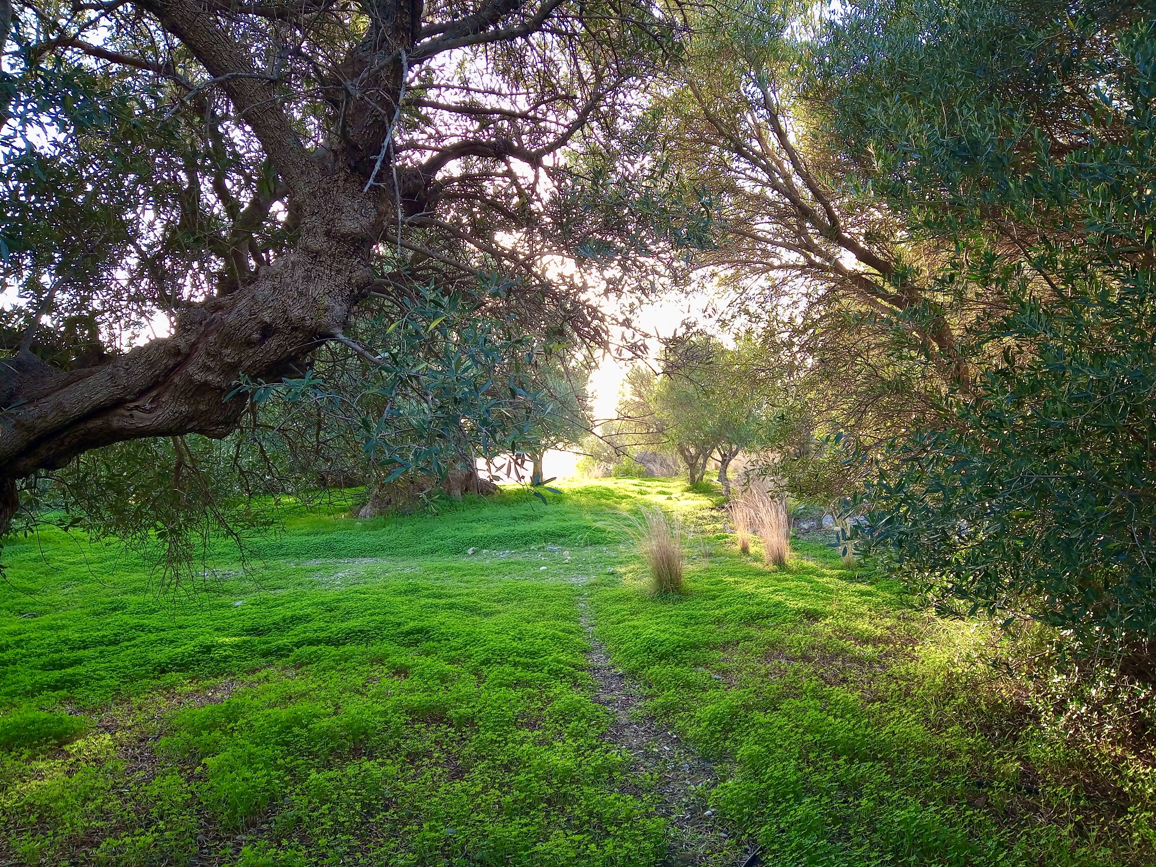 Above: The rains may not have been enough so far, but they’ve still produced this wonderful green carpet in the olive groves. Here I’ve photographed them just before sunset.