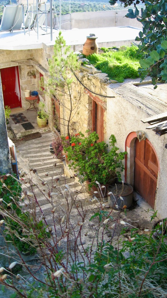 Today we hit the jackpot. Maria, across from us, had recently seriously hurt her left hand, as mentioned in this post and, as we beavered away removing weeds, she emerged from her mother Evangelia’s house and came out to say hello. Her left hand, once so heavily bandaged you couldn’t even see the fingers and thumb, was now kind of strapped up with a few elasticated – well – straps. She asked how Yvonne’s shoulder was doing and we asked how she was doing and there followed that mutual exchange of injury comparisons that we humans seem to so often engage in. She says her injury involved a break in one or more of the bones in her wrist and that it could take a couple of years to heal completely. Bad news for someone who has to work in a hotel in Agios Nikolaos during the tourist season. She says that if she can’t manage to work then she may well have to see what help she can get from the government. Contrary to what many would have you believe, there is actually some money available to people with long term injuries of chronic health issues who are still of a working age.