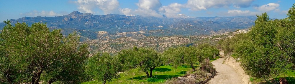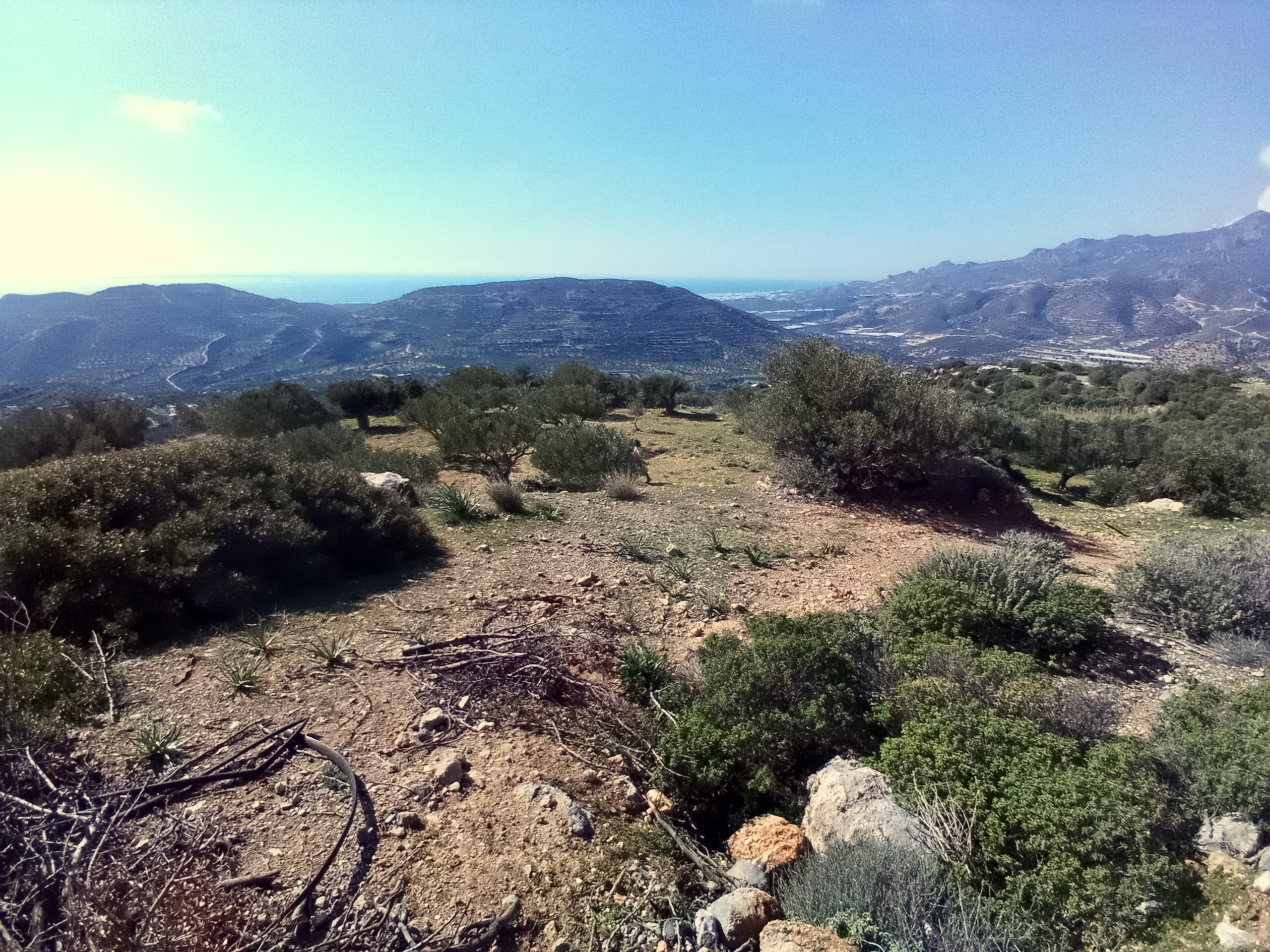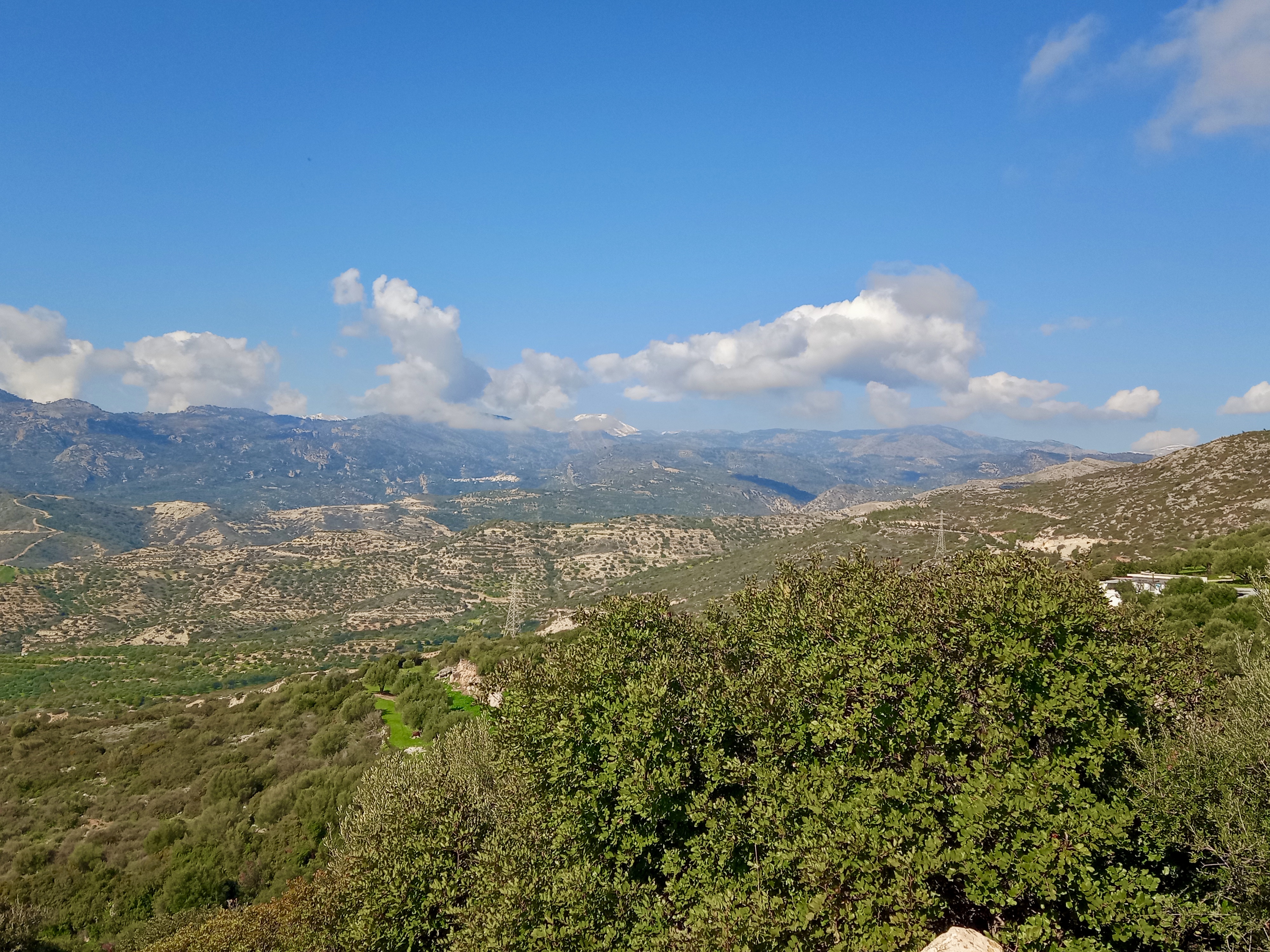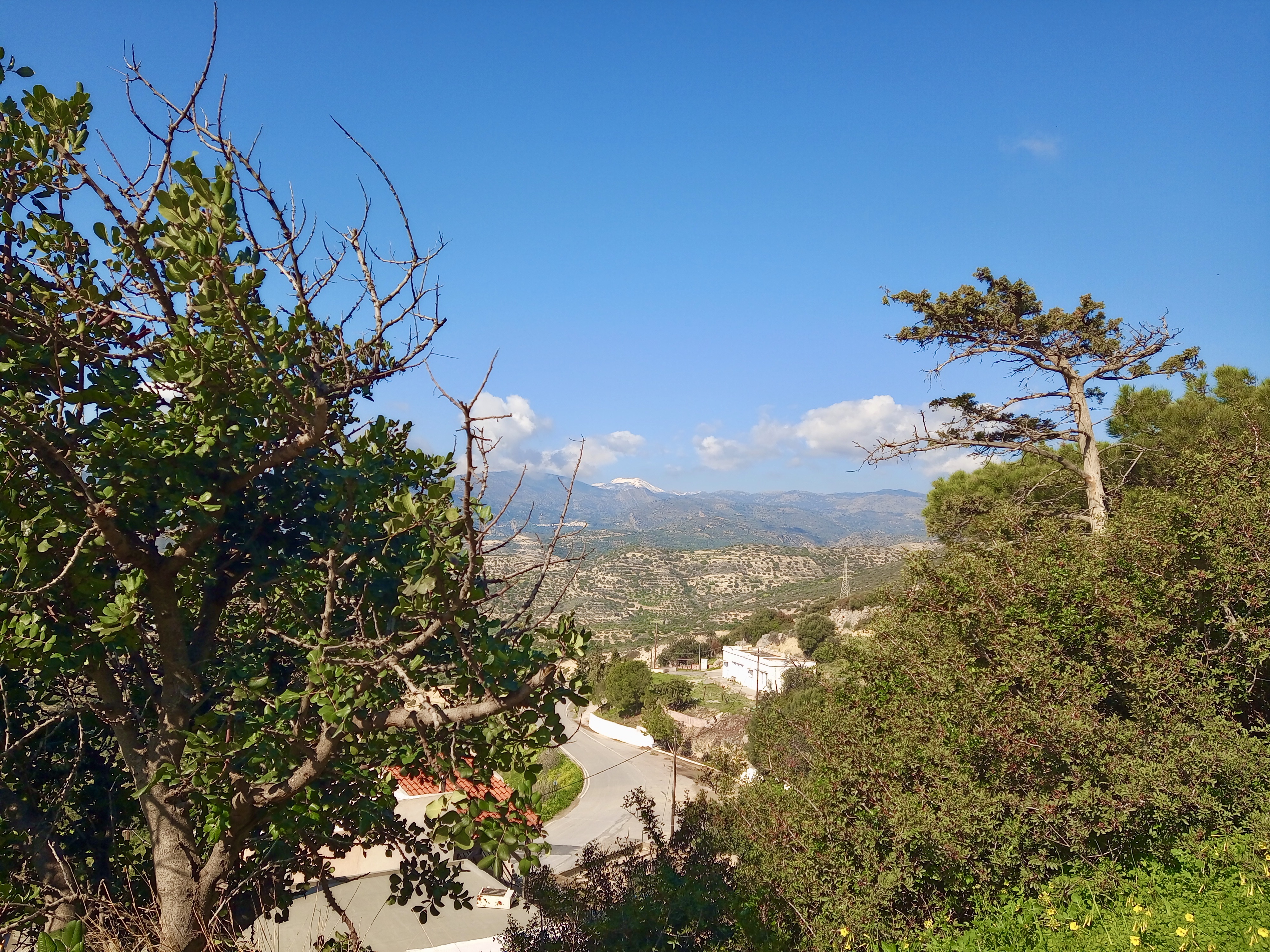 Friday morning February 23rd. Went for a walk in the mountains above the village this morning, it was a simply wonderful day. Across the vast valley from us you could clearly see the snow on the peaks that surround the Lasithi Plateau, but where we were walking it was t-shirt weather. The hills were alive, not with the sound of music, but with birdsong everywhere, including warblers, blackbirds and chiffchaffs. Plus, high above, and even not so high at one point, griffons soared, their beady eyes searching hundreds of feet below for their next meal, no doubt. Their wingspan is truly awesome, and would easily outdo the width of our car’s windscreen by a considerable margin. So, here are the photos from that walk. Hope you like them: