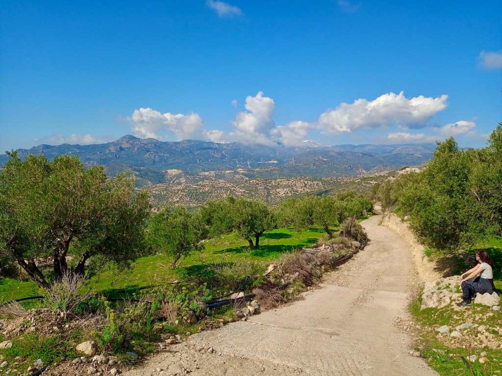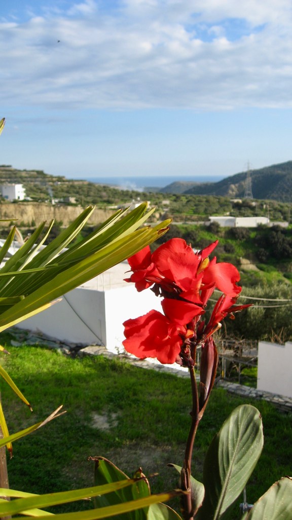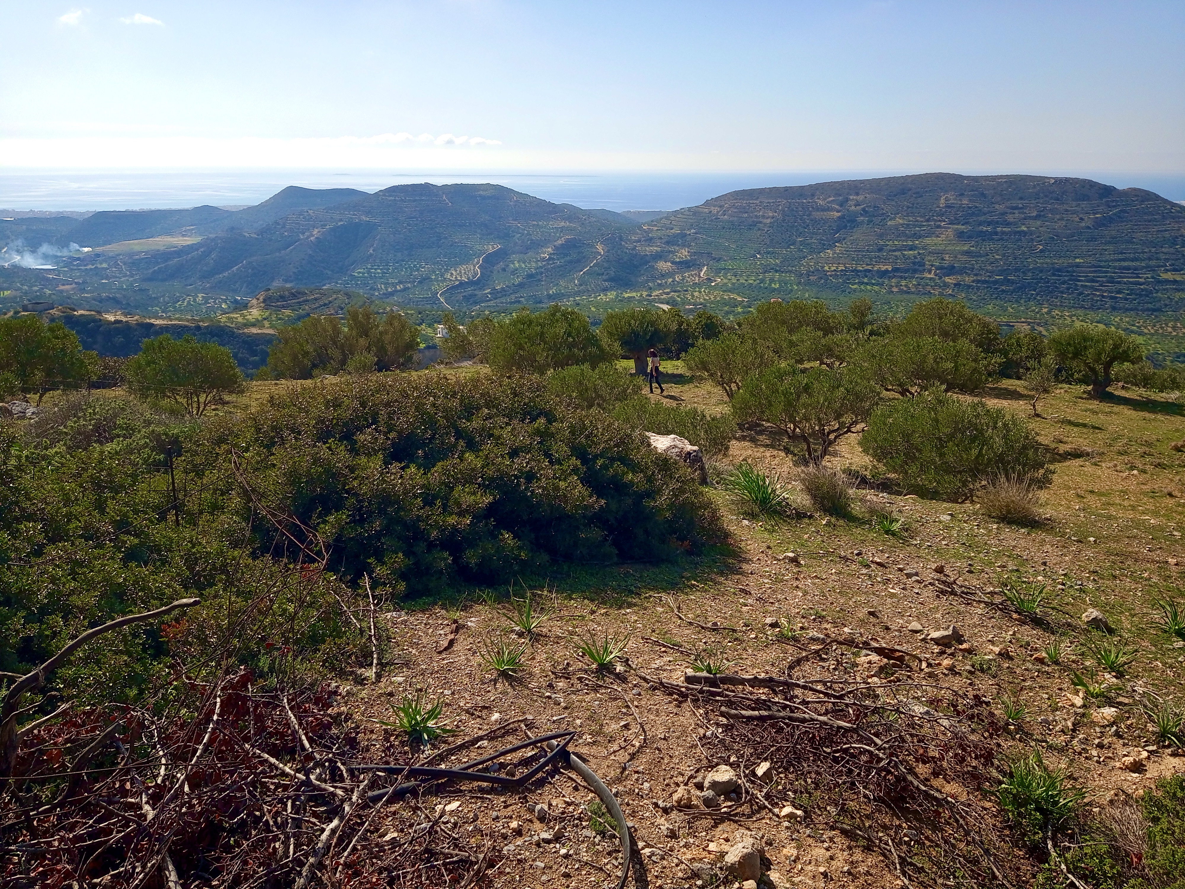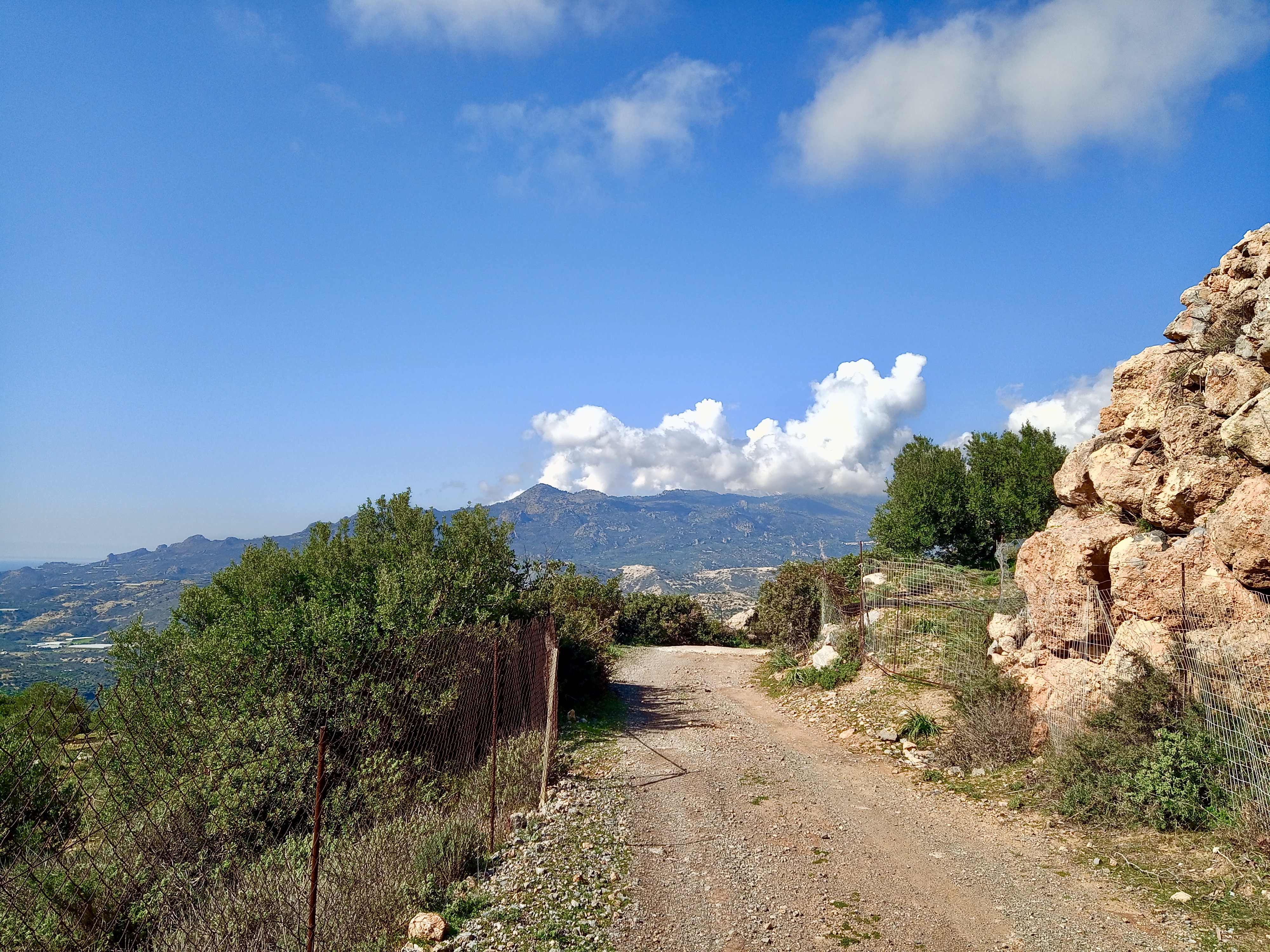 Friday morning February 23rd. Went for a walk in the mountains above the village this morning, it was a simply wonderful day. Across the vast valley from us you could clearly see the snow on the peaks that surround the Lasithi Plateau, but where we were walking it was t-shirt weather. The hills were alive, not with the sound of music, but with birdsong everywhere, including warblers, blackbirds and chiffchaffs. Plus, high above, and even not so high at one point, griffons soared, their beady eyes searching hundreds of feet below for their next meal, no doubt. Their wingspan is truly awesome, and would easily outdo the width of our car’s windscreen by a considerable margin. So, here are the photos from that walk. Hope you like them:
