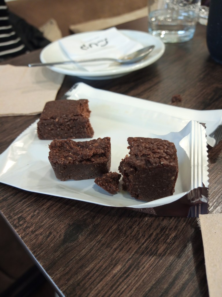 One of our favourite cafés in town is the Cup (I’ve mentioned it numerous times I guess). Not only is their Americano one of the best in town, but they also do our favourite ‘bar’ of all time. It’s produced by a wholly Greek company, called ‘My Greek Taste‘ and they’re very into healthy products. The best in our book is the Tahini Bar (see wrapper in one of the photos below) which is entirely made of healthy ingredients. There’s no sugar or salt and no preservatives. it’s mainly tahini, carob honey and oats. It’s delicious and is fast becoming a must every time we sup a coffee in the Cup.