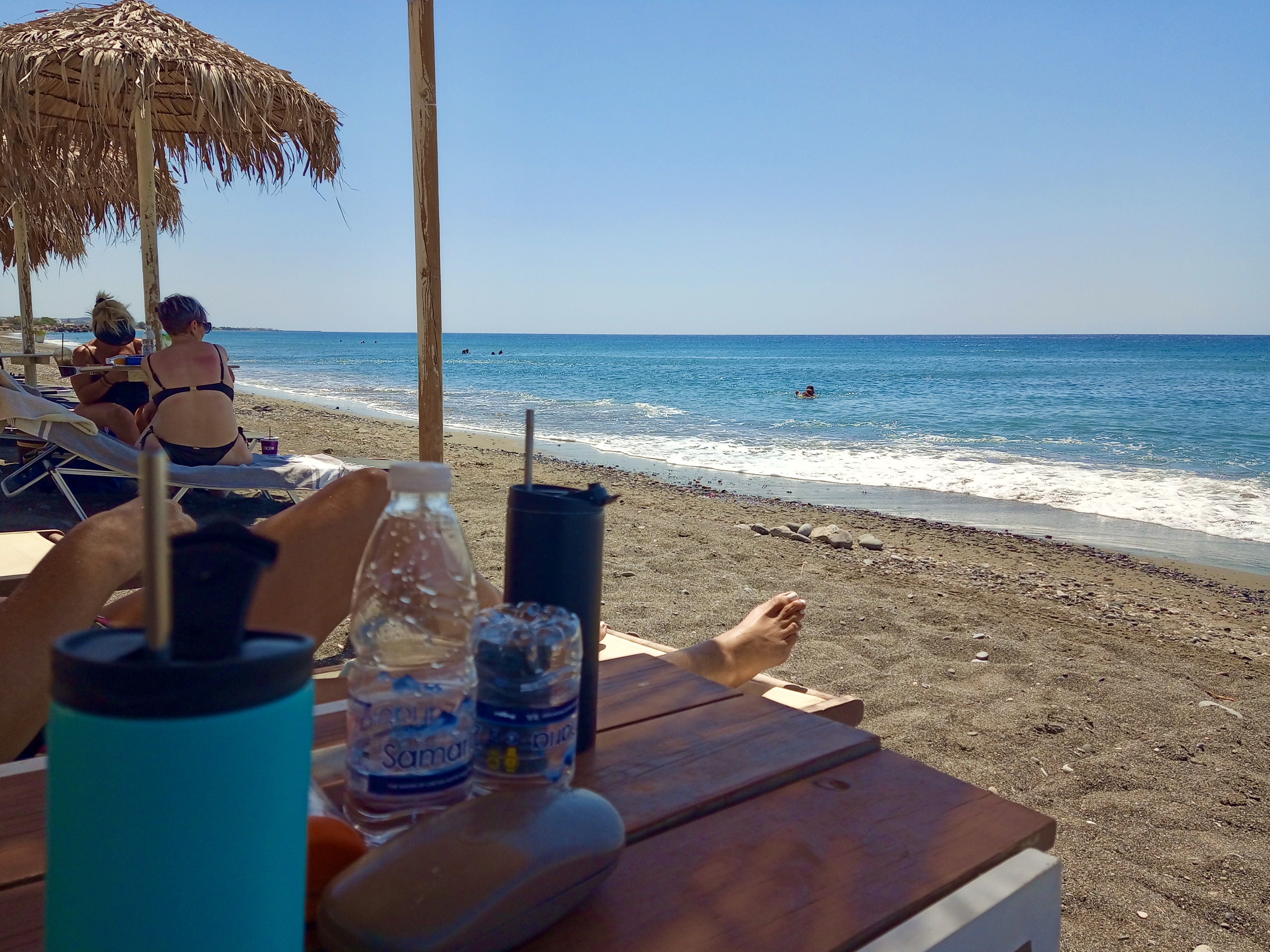 The majority of local Greeks do not want to spend an entire day on the beach. We too tend to do what they do, which is to turn up, order a coffee, then spend an hour or two relaxing before leaving again. If you’re gonna be charged an arm and a leg for sun beds, you’re going to find that slightly galling, right? I’ve even talked to Greeks who’ve been visiting Ierapetra from the more touristy parts of the island, and they’ve not even known that sunbeds are free on our beaches, as long as you buy a drink. A mature couple was standing beside the beach last season, evidently Greek, when I said hello while passing. They asked me, “Excuse us, but how much are the beds here please?”