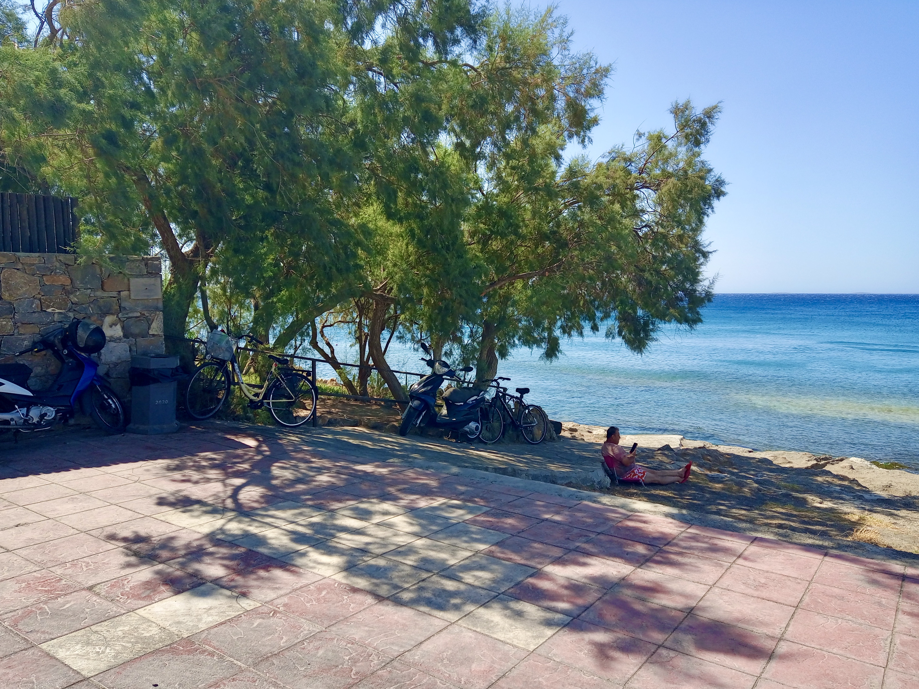 Our curiosity satisfied, we moved the conversation along, since Giorgos had joined us and we wanted to ask after his knee problem. “Eh!” He replied, “it is what it is. I just put up with it.” It doesn’t stop him, a near 90 year-old, from getting up every morning, crossing the road and tending his horafi, where he still grows a selection of vegetables for the table. He reckons that he’s cut back how much he does there nowadays, but you could have fooled us. There had been another tremor a few hours before we sat down together, so we asked what they thought of the possibility of a big quake coming some time.