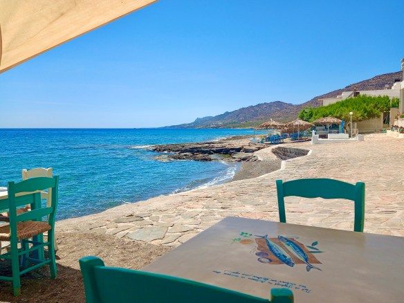 The photo at the top, BTW, is taken from the Robinson Taverna, looking towards the Kalliotzina, at Koutsouras, just along the coast from here.