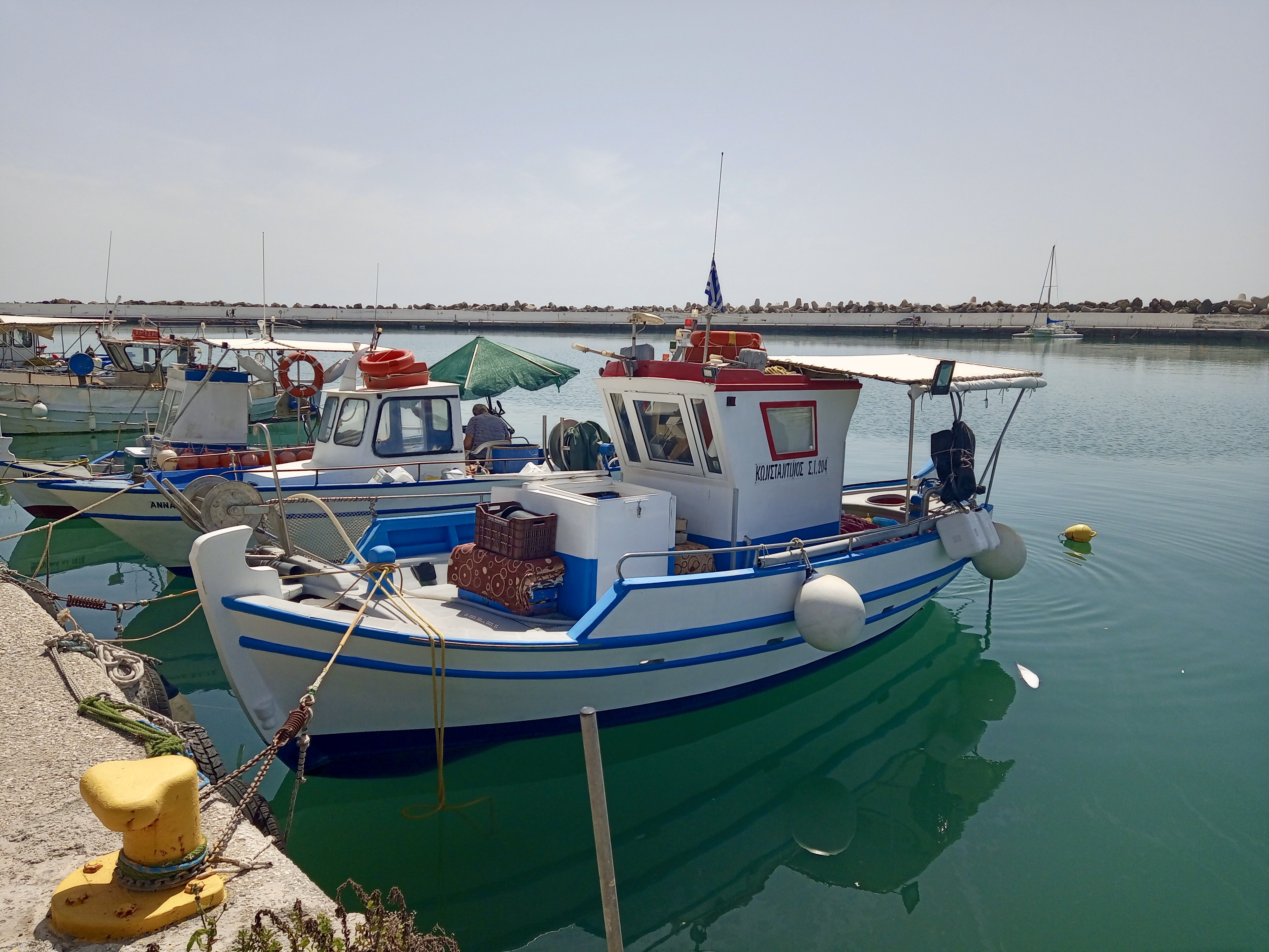 When we reached the harbour end, a Greek chap of probably around seventy years of age approached us to engage us in a friendly conversation. His name was George and, like so many Greeks of his generation, he’d spent many years away from his ‘katagogi‘ [place of origin] owing to his having been a policeman in both Athens and Heraklion for the length of his working career. He’d recently retired and, since he [of course] still had a house in Kavousi, he’d recently returned home to enjoy his golden years. When he was young, he told us that the hills around Tholos Bay had been rich with wheat, barley and potato cultivation, all of which was now gone. “Nowhere stays the same, I suppose,” he said with a copious helping of melancholy in his voice. As we stood on the concrete jetty and looked across the bay toward the steeply sloping mountain on the other side, he told as about the new villas that had been built there. Fortunately, the regulations in those parts stipulate that a new build has to have a pretty generous parcel of land around it, to avoid overdevelopment. He did tell us how much land each new house had to have, but I can’t remember the exact figure now, but it’s measured in ‘stremmata,’ of course.