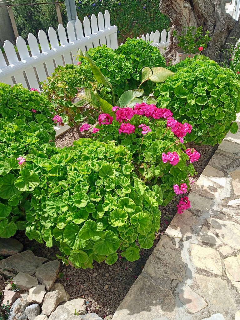 Time marches ever onwards, eh? It’s quite sobering to think that, come September, we shall have been living here on Crete for five years already. We have seen most of our near neighbours during this past few days, largely because we’ve been perched on our garden wall sanding down and repainting the picket fence, as I mentioned in the last post. Yesterday Manolis, who lives a few doors along from Angla’i’a and Giorgo, came shuffling down the steep lane. It was agonising to watch him shifting his walking frame (what the Greeks call a ‘Pi’ owing to the fact that it’s shaped like the Greek letter ‘p’) a couple of centimetres at a time, yet also inspiring in that he never gives in. He’s ninety this year.